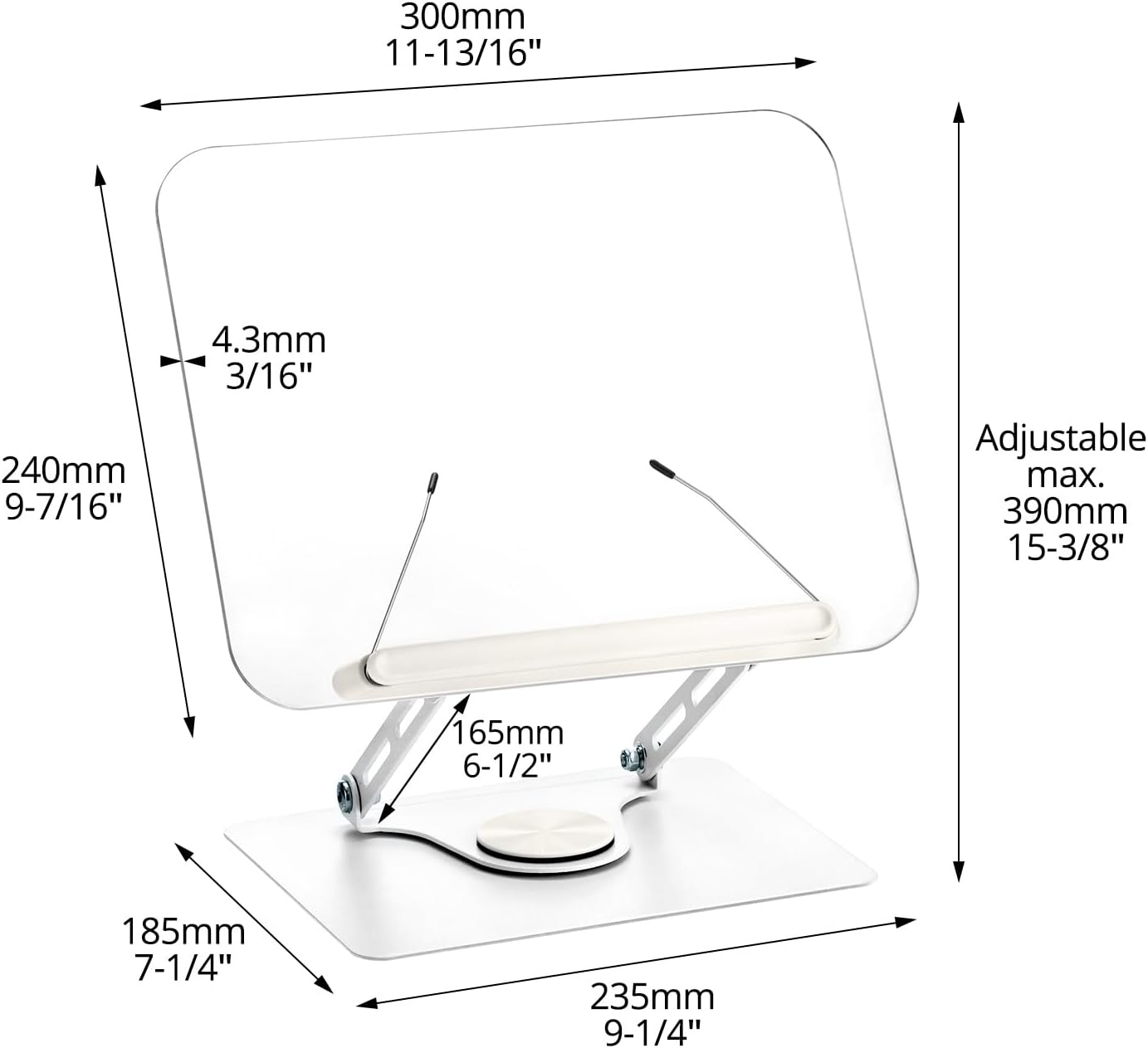 • Universelle Kompatibilität: Acryl-Halteplatte Grösse 24 x 30 cm, Unterstützt Bücher und Geräte von 3,5 bis 15 Zoll (Handys, Tablets und Laptops).