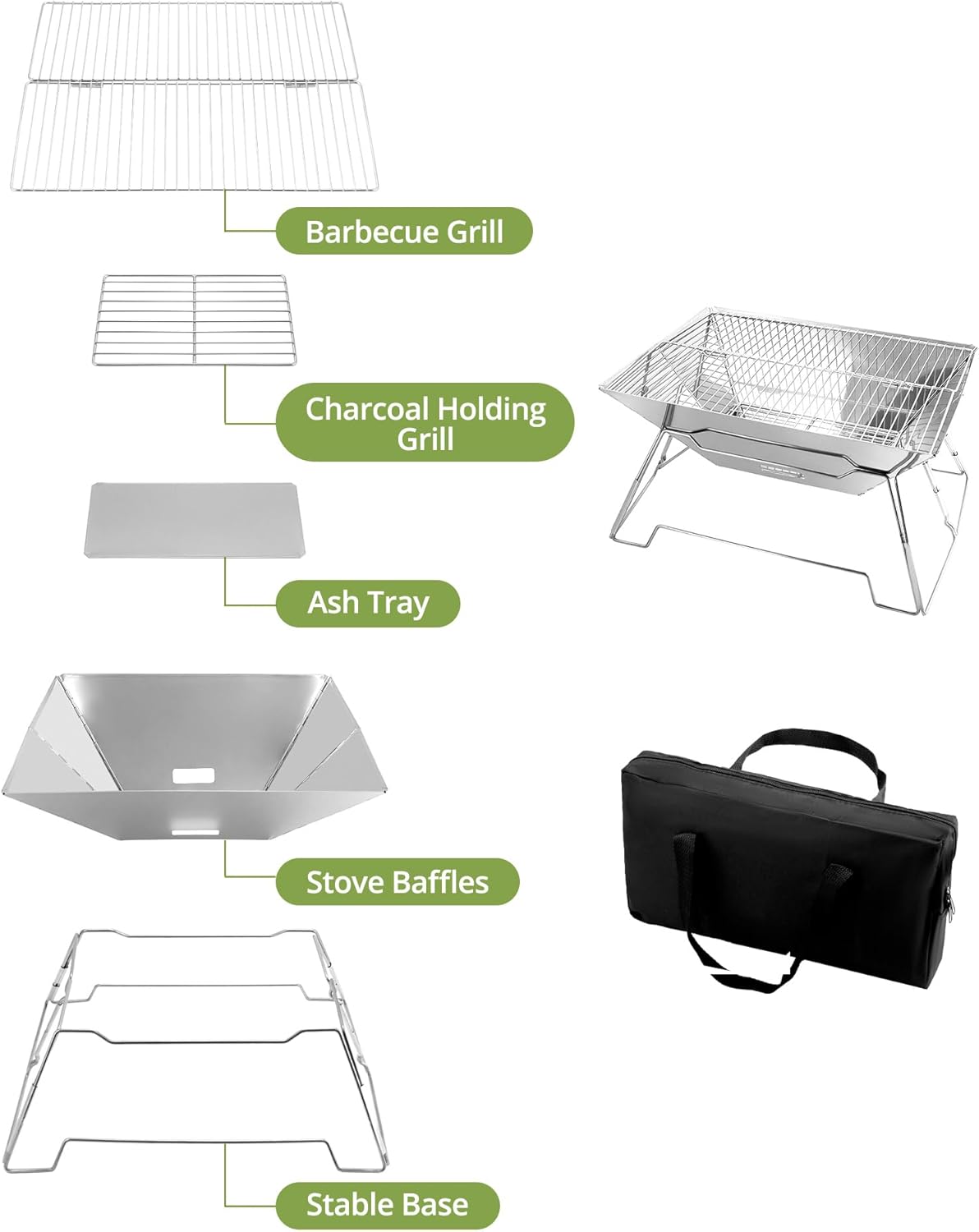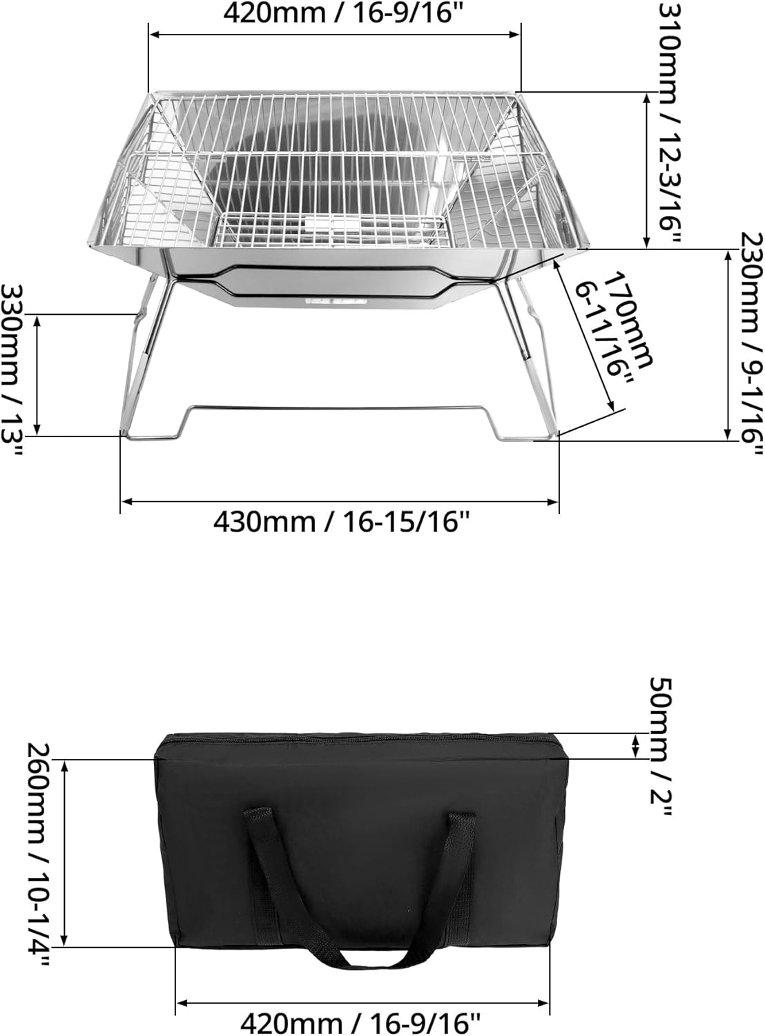 - Tragbar und leicht: Die Lagerfeuerstelle misst im aufgeklappten Zustand 42 x 33 x 23 cm und im zusammengeklappten Zustand 42 x 33 x 5 cm und wiegt nur 1,95 kg. Wird mit einer Tragetasche zur einfachen Aufbewahrung geliefert.