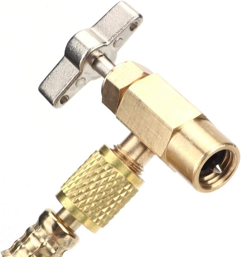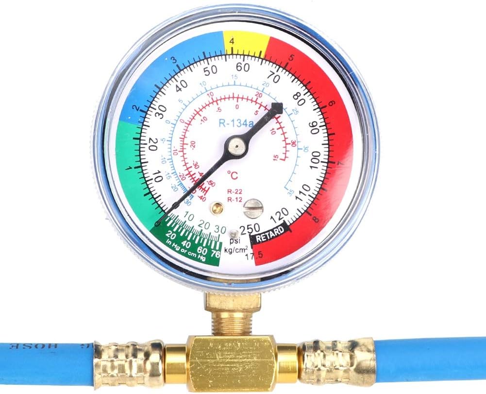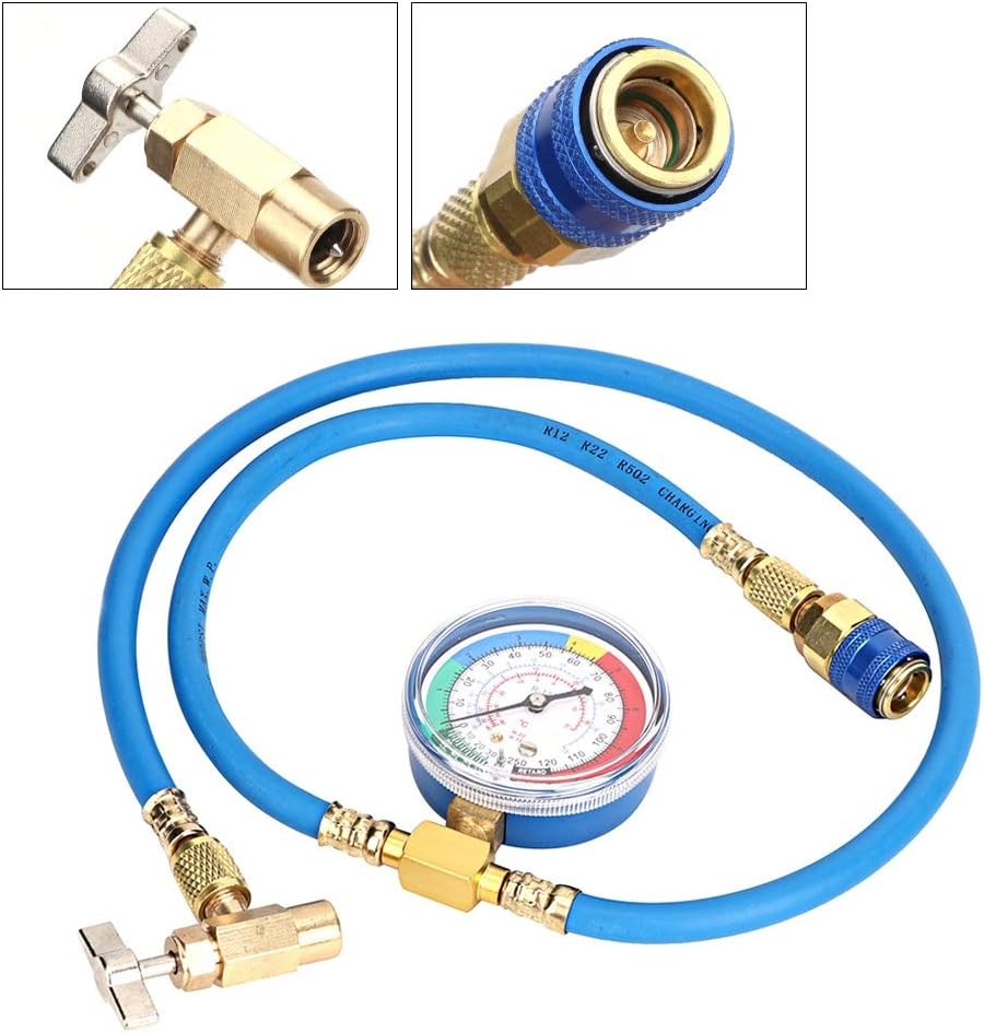 - Dieser Kältemittelfüllschlauch R134A wird mit einem Messgerät geliefert, das während des Gebrauchs leicht angezeigt werden kann.