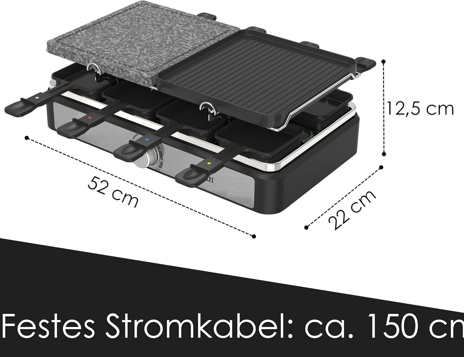 • ✔️ "Praktischer Raclette Party Grill Genuss mit 8 Pfännchen für die ganze Familie..." Mit der kombinierten Fläche aus Naturstein, Grillplatte und 1.400 Watt haben Sie ein echtes Highlight bei Ihrer nächsten Raclette-Party.