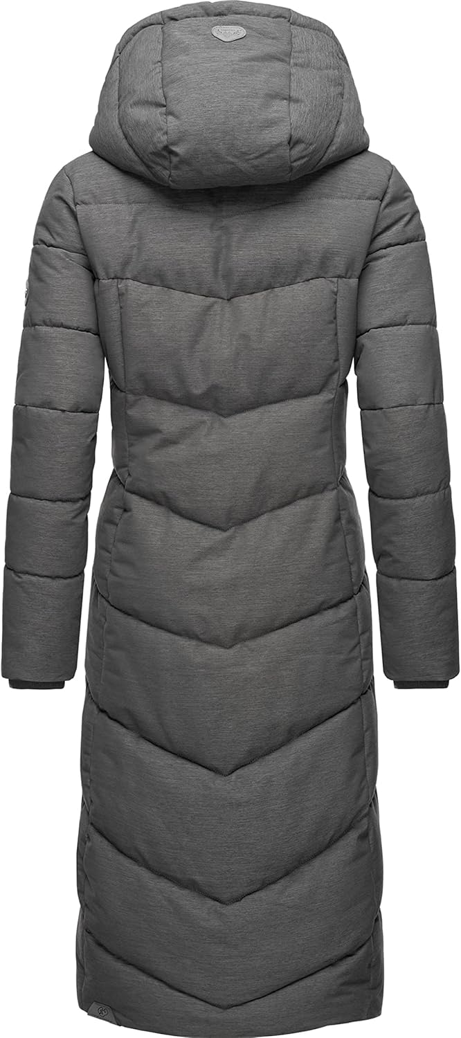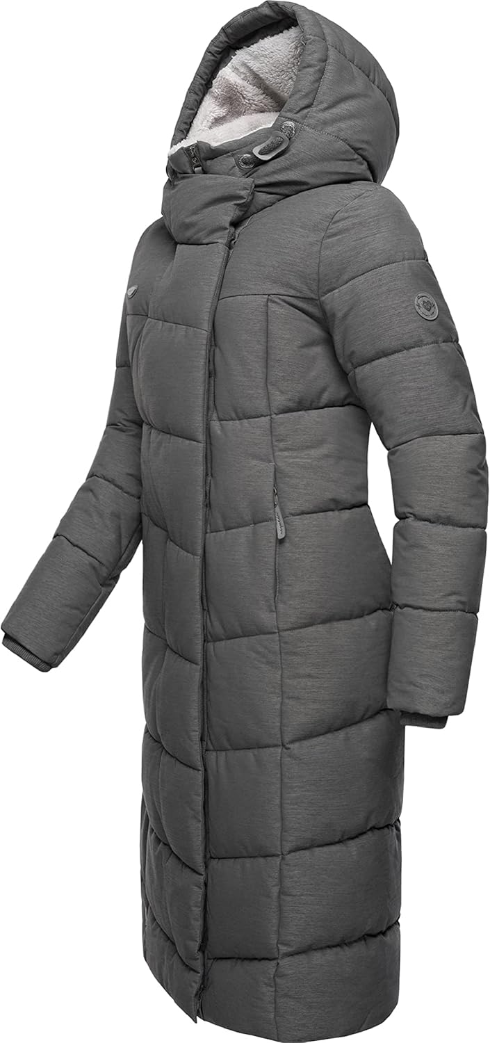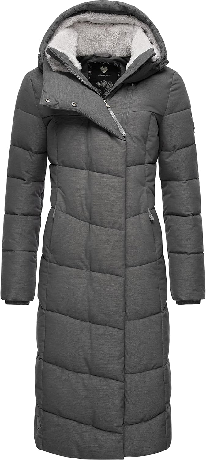 - LOOK: Warme lange Damen Winterjacke mit weicher Wattierung, gefütterter Kapuze und Tunnelzugkordeln vom angesagten Street-Wear Label Ragwear, 100% vegan hergestellt