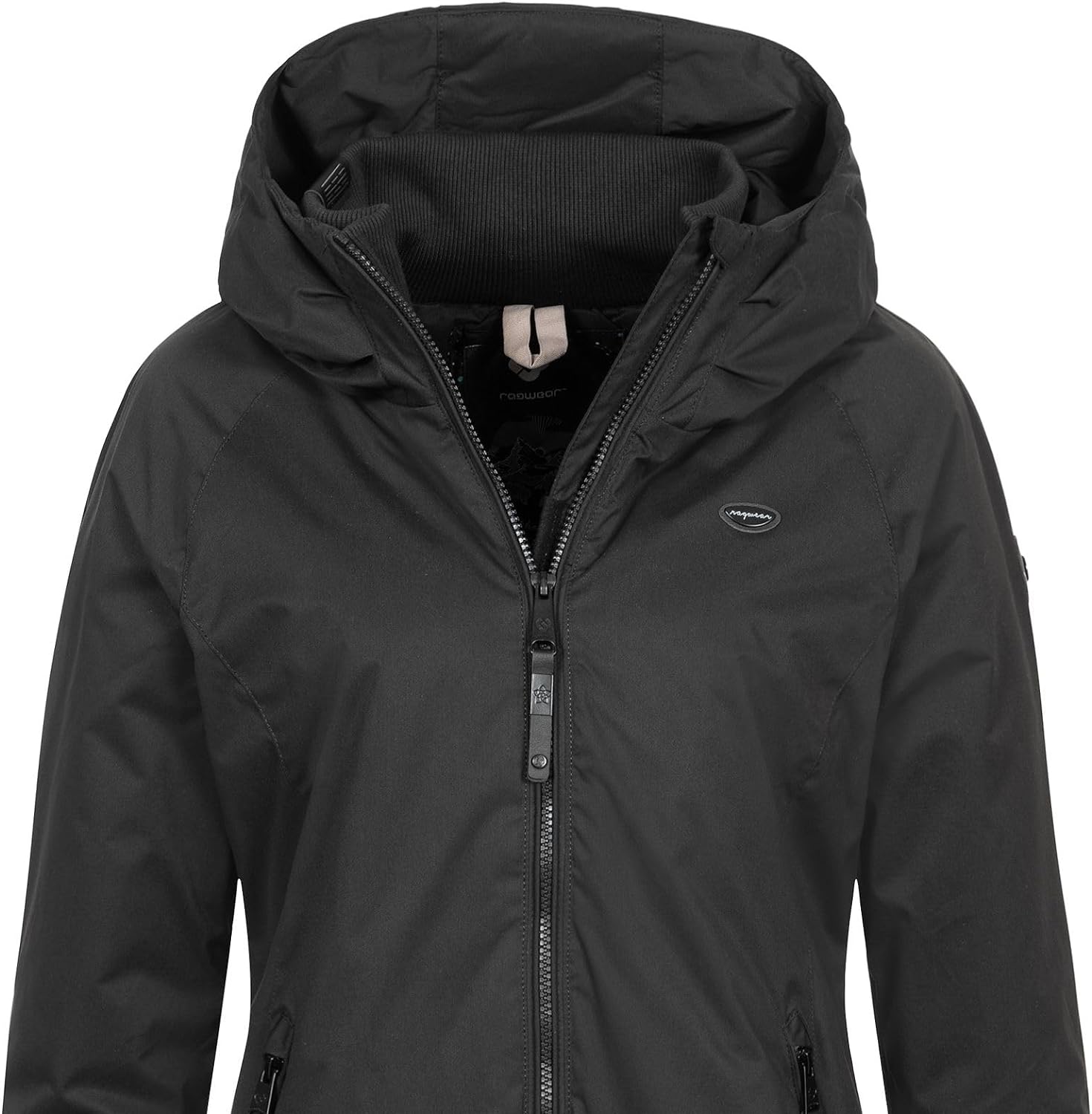 PRODUKTBESCHREIBUNGEN topmoderne Kapuzenjacke für Damen mit funktionellen Eigenschaften ein angesagter Freizeitbegleiter der Marke Ragwear perfekt für die Übergangszeit oder milde Wintertage aus wasser- und windabweisendem Material Regular Fit - normale Passform hüftlang Frontzipper mit Kinnschutz gerippter Kragen mit fixierter Kapuze seitliche Einschubtaschen mit Zipper und Fleecefutter 1 Innentasche elastische Rippbündchen an den Ärmelenden Gummizugband im Saum Logoapplikationen Wassersäule: 4000 mm PETA zertifiziert - vegan hergestellt Maschinenwäsche bei 30°C im Schonwaschgang Material: 100% Polyester, Futter: 100% Polyester