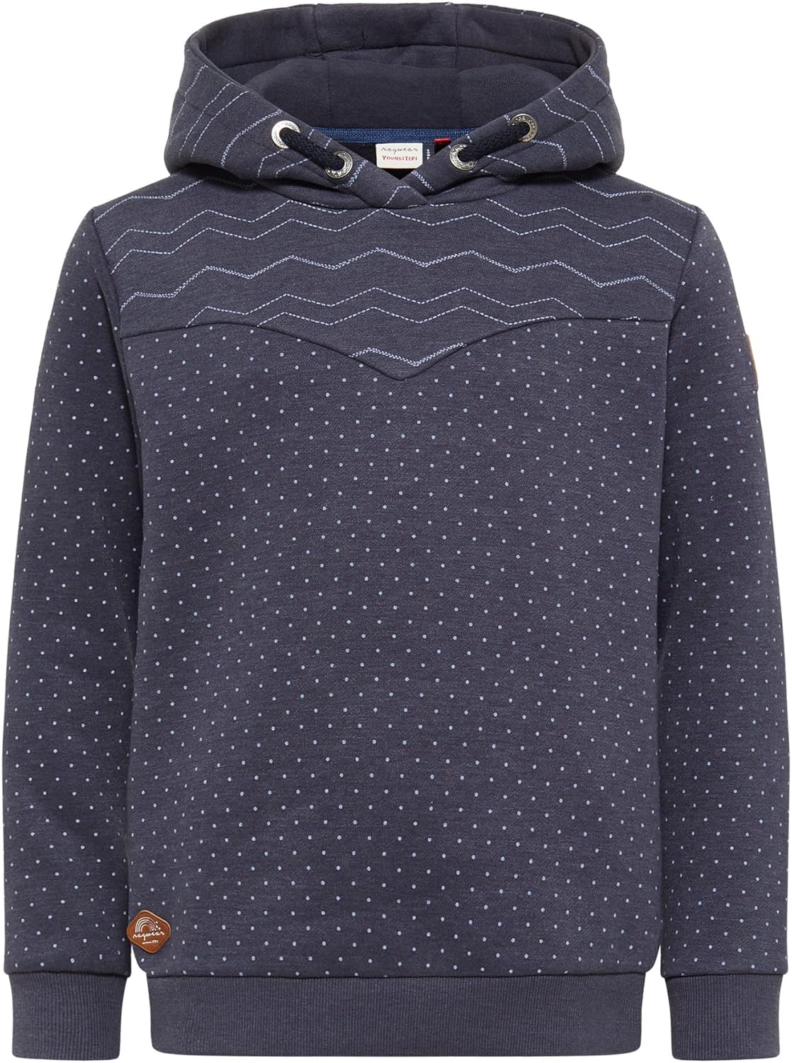 PRODUKTBESCHREIBUNGEN Das vegane Sweatshirt ´KRISTLA SWEAT` von ragwear ist ein toller Pulli für die kühlere Jahreszeit. Das Beste an ihm? Die gemütliche, grosse Kapuze mit Tunnelzug und der verspielte Muster-Mix aus Zickzack und Pünktchen. Das Ganze wird im Streetwear-Design mit ragwear Label-Applikationen ergänzt. Bündchen an den Ärmeln und am Saum sorgen für einen guten Sitz.