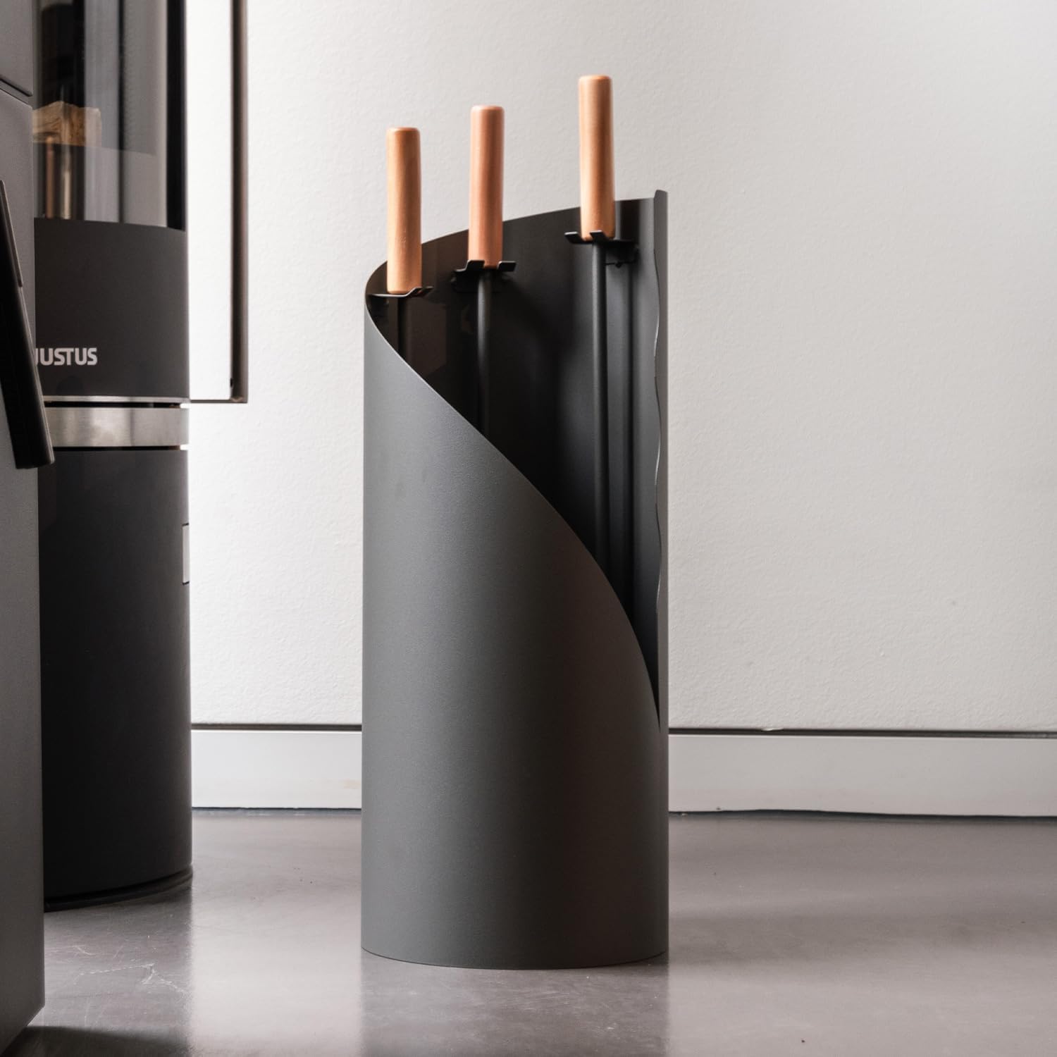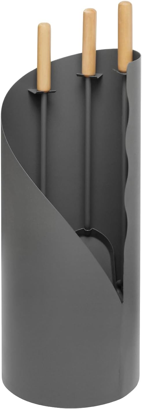 PRODUKTBESCHREIBUNGEN Die hochwertige Kamingarnitur Otto wertet nicht nur Ihre Feuerstelle optisch auf, sondern erleichtert Ihnen zudem die Reinigung Ihres Kaminofens. Das 3-teilige Kaminbesteck besteht aus Kaminschaufel, Kaminbesen und Schürhaken. Nutzen Sie den Schürhaken zum Auflockern der Holzscheite und sorgen Sie damit für eine bessere Sauerstoffzufuhr, wodurch das Feuer erneut entfacht wird. Die Kaminschaufel erleichtert Ihnen nach dem Abbrand die Entnahme der Asche und mit dem Kaminbesen kehren Sie den Brennraum schnell und einfach aus. Die Werkzeuge werden platzsparend im formschönen Kaminständer untergebracht und in die dafür vorgesehenen Halterungen gesteckt. Das Kaminbesteck Otto aus grau beschichtetem Stahl und macht neben jedem Kamin- oder Küchenofen eine gute Figur. Als besonderes Kontrastdetail sind die Griffe der Werkzeuge aus Holz gefertigt. ? Masse ((H x Ø): 64 x 23 cm ? Besen, Schaufel, Schürhaken Sicher finden Sie in unserem Shop auch einen passenden Holzkorb.