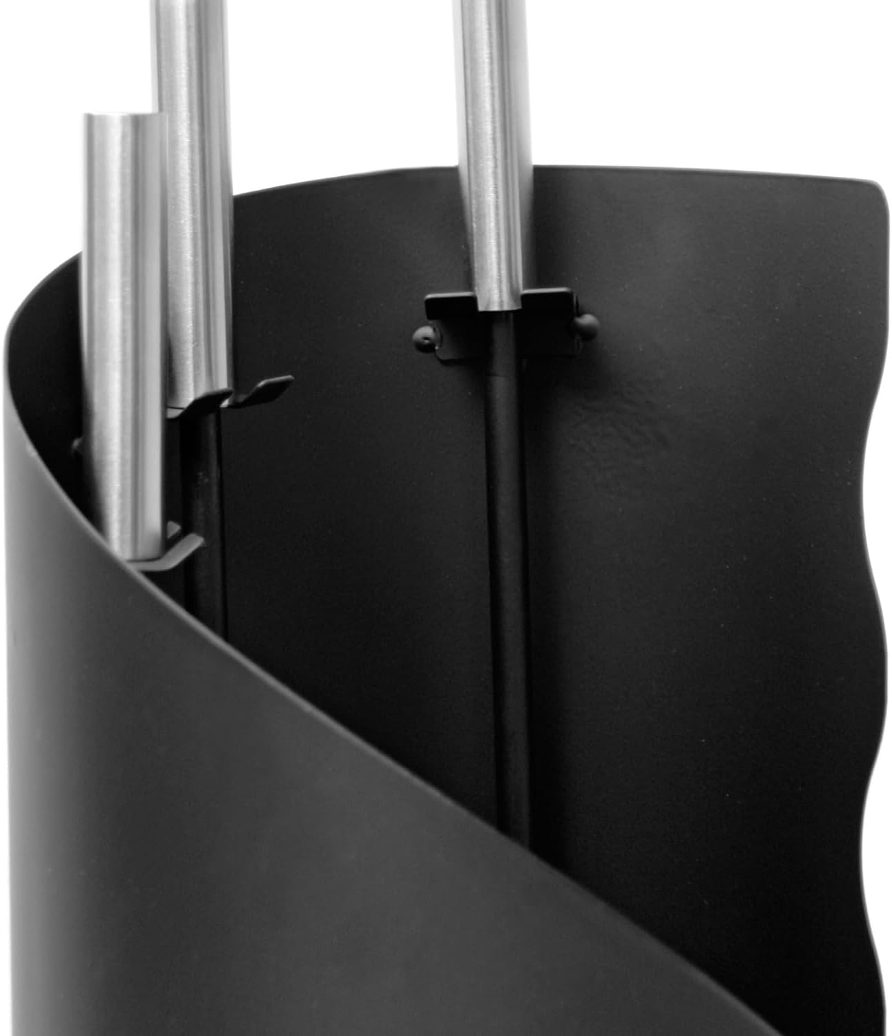 PRODUKTBESCHREIBUNGEN Die hochwertige Kamingarnitur Fritz wertet nicht nur Ihre Feuerstelle optisch auf, sondern erleichtert Ihnen zudem die Reinigung Ihres Kaminofens. Das 3-teilige Kaminbesteck besteht aus Kaminschaufel, Kaminbesen und Schürhaken. Nutzen Sie den Schürhaken zum Auflockern der Holzscheite und sorgen Sie damit für eine bessere Sauerstoffzufuhr, wodurch das Feuer erneut entfacht wird. Die Kaminschaufel erleichtert Ihnen nach dem Abbrand die Entnahme der Asche und mit dem Kaminbesen kehren Sie den Brennraum schnell und einfach aus. Die Werkzeuge werden platzsparend im formschönen Kaminständer untergebracht und in die dafür vorgesehenen Halterungen gesteckt. Das Kaminbesteck Fritz aus schwarz beschichtetem Stahl macht neben jedem Kamin- oder Küchenofen eine gute Figur. Als besonderes Kontrastdetail sind die Griffe der Werkzeuge in Edelstahloptik gefertigt. ? Masse ((H x Ø): 61 x 21 cm ? Besen, Schaufel, Schürhaken Sicher finden Sie in unserem Shop auch einen passenden Holzkorb.