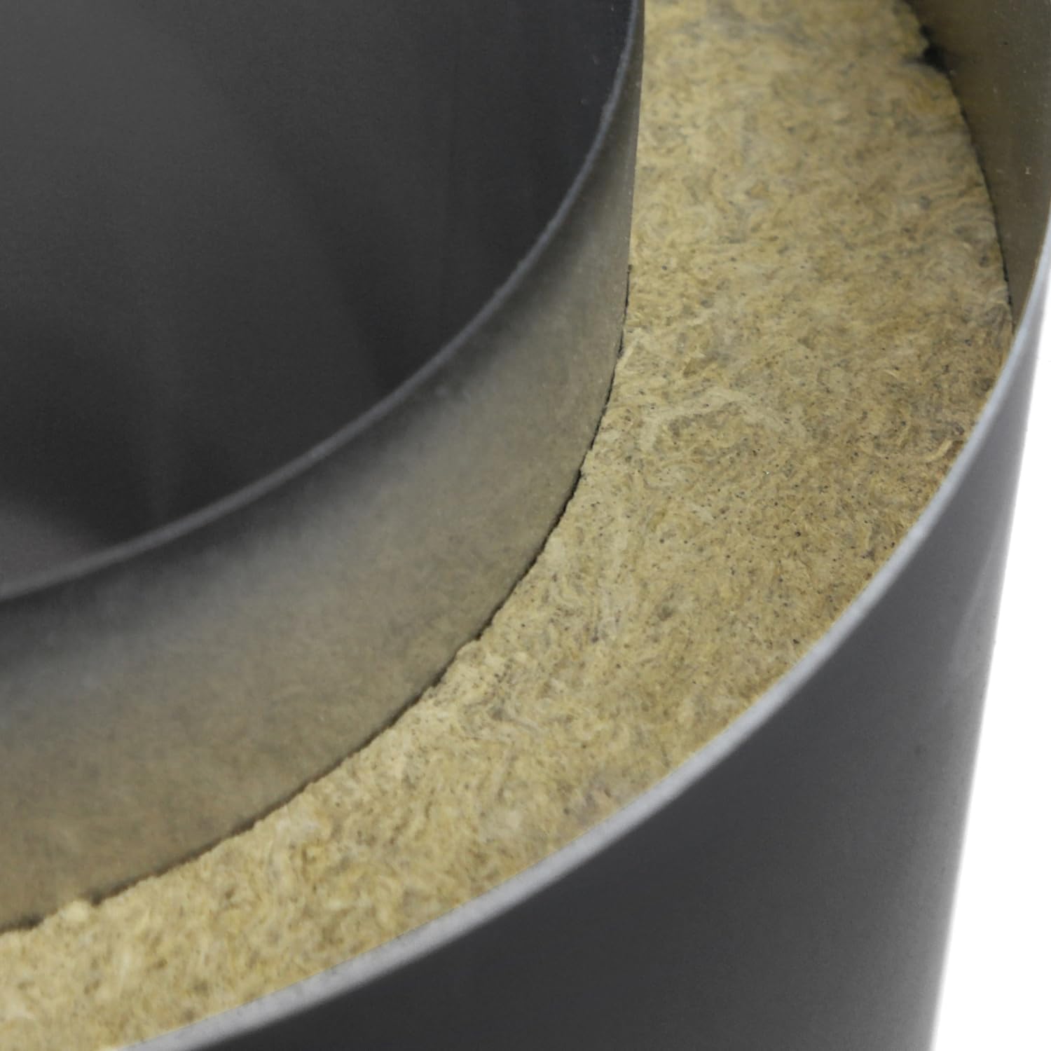 PRODUKTBESCHREIBUNGEN Das doppelwandige Rauchrohr besteht aus lackiertem Stahl und verhindert dank seiner Wärmeisolierung die Bildung von Kondensat, auch wenn die Abgasführung durch mehrere Räume mit wechselnden Temperaturen erfolgt. Es ist bis 600 °C hitzebeständig. Das Rauchrohr ermöglicht einen äusserst geringen Abstand von 100 mm zu brennbaren Materialien. Die Verjüngung an einem Ende des Rohres dient dem mühelosen Zusammenstecken einzelner Elemente. Es eignet sich für Kamine, Öfen, Heizkessel und Holzvergaser mit einem Rauchrohranschluss von 150 mm. ? Anschlussmass: DN 150 ? Länge: 1000 mm ? Aussendurchmesser: DN 215