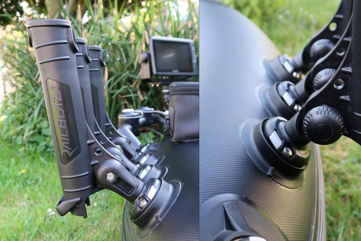 PRODUKTBESCHREIBUNGEN Railblaza Rod Tube, Rutenhalter Angelrutenhalter für Boote und Schlauchboote (schwarz) 02-4118-11. Mit diesem Rutenhalter kannst Du dich während des Angels auch einfach mal entspannen und ausruhen. Perfekt konzipiert sodass Du gleichzeitig mit mehreren Ruten angeln kannst, ohne dabei auf Komplikationen zu stossen. Der Rutenhalter ist stufenweise 360° drehbar und kann beliebig auf 90° geneigt und justiert werden. Durch den einklappbaren hinteren Riegel, wird das herausragen des Rutenstiels verhindert. Dadurch hast Du mehr Platz im Boot. Dieser Rutenhalter eignet sich für alle gängigen Ruten und Rollen. Es können auch sehr grosse Ruten, die vorzugsweise im Salzwasser benutzt werden gehalten werden. Das Set besteht aus 3x Rod Tube, 3 Quikport und 1x Kleber Kit