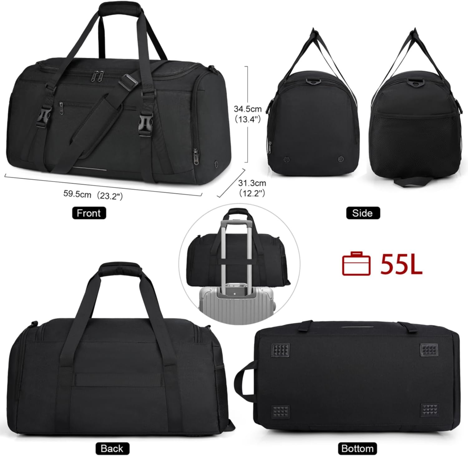 - 【Grosse Kapazität】: Grösse 55L: 59.5*31.3*34.5cm. Gewicht: 1,3 kg.Diese Reisetasche hat 9 Taschen, darunter 1 grosses Hauptfach, 4 Innentaschen, 2 Vordertaschen mit Reissverschluss, 1 Schuhfach und 1 seitliches Netzfach.Mehrere Taschen und grosses