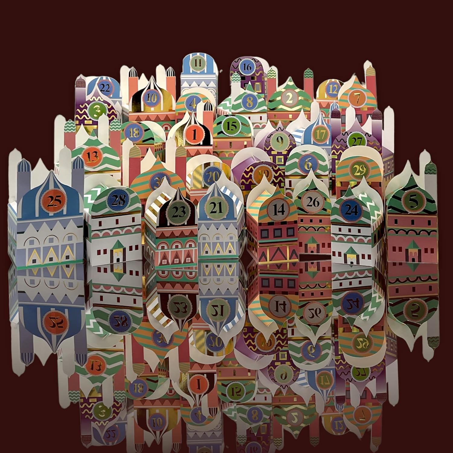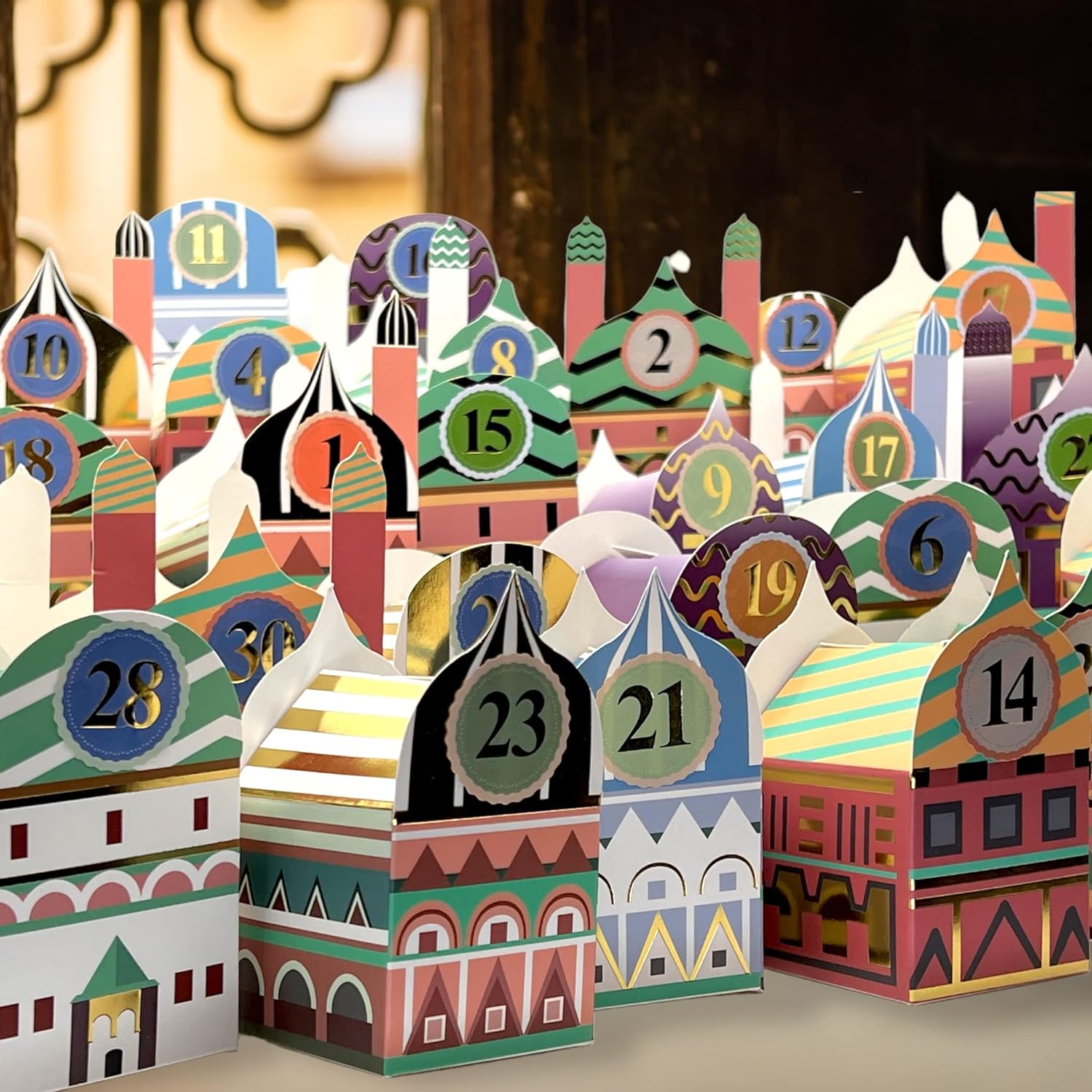 - Unser Set enthält 30 Schachteln und 30 Aufkleber mit den Nummern 1-30. Jede Schachtel im Set ist anders: sechs verschiedene Designs und fünf verschiedene Grössen, wunderschön veredelt mit glänzendem Goldfoliendruck.