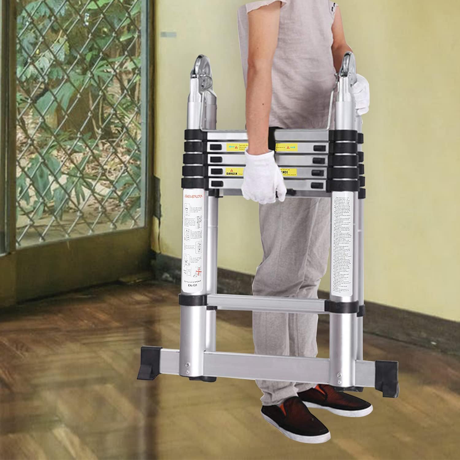 - ➤Leicht und Stabil:Die Stehleiter besteht aus einer Aluminiumlegierung.Es ist leicht und einfach zu tragen.Die Schiebeleiter ist nach dem Klappen nur noch 0.92 M gross und wiegt nur 17.3 kg. Es kann im Keller, im Dachboden oder im Lagerraum aufbewahrt werden, um Platz zu sparen .