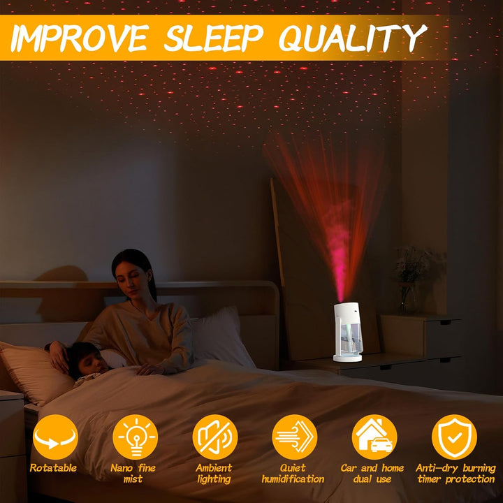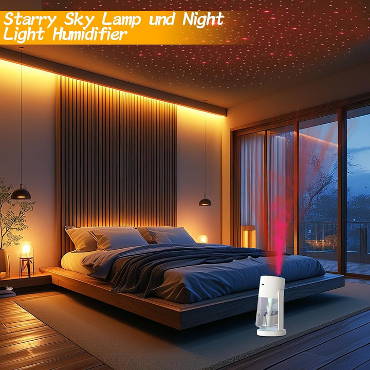 - 【LED Sternenlichter Luftbefeuchter】Diese Luftbefeuchter mit led sternenlichter projektor kann Ihnen ein beeindruckendes Sternenhimmelerlebnis bringen. Sie kannst Projizieren Sie es an die Wand oder Decke Ihres Zimmers und wodurch eine lebendige