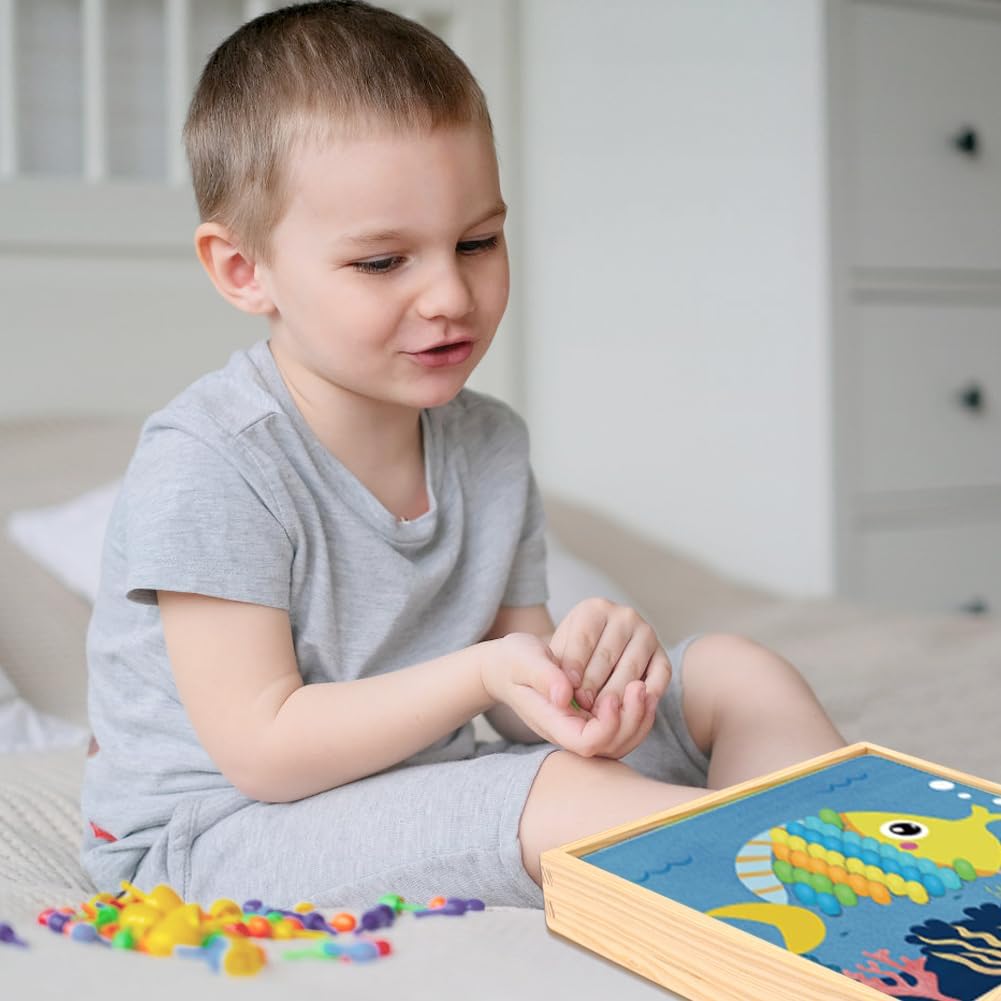 - 【Hochwertiges Material】Das Holzmosaik-Puzzle besteht aus Holz, Abgerundete Kanten, abgetrennter Boxenboden zur einfachen Aufbewahrung, feine Steckdosen und geruchsneutral. Die Perlen sind aus hochwertigem ABS-Material, mit leuchtenden Farben, rund