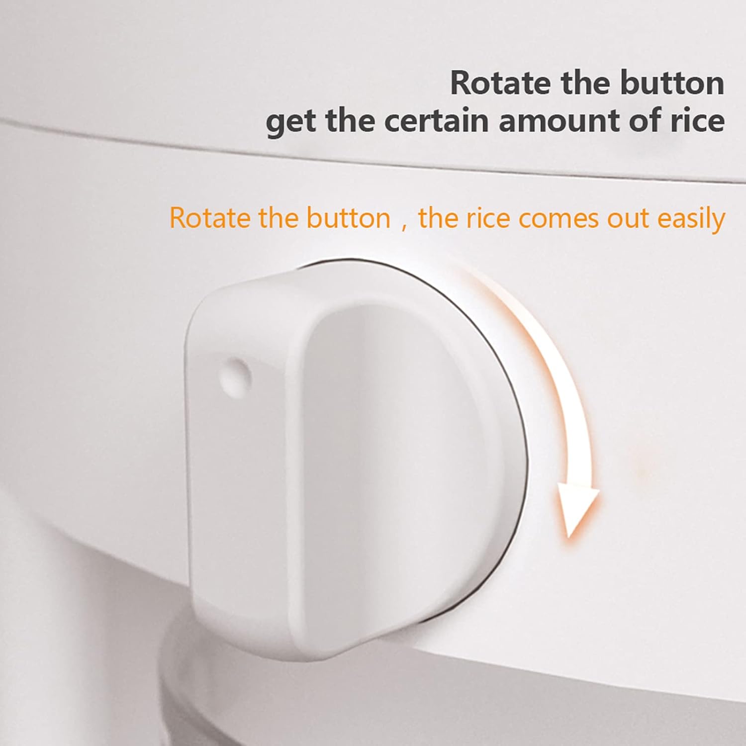 • 🍚Rotierendes Design: Passen Sie die Kornmengen bequem an und messen Sie sie. Unsere Lebensmittelaufbewahrung kann bis zu 10 kg Reis und Getreide Ihrer Wahl aufnehmen