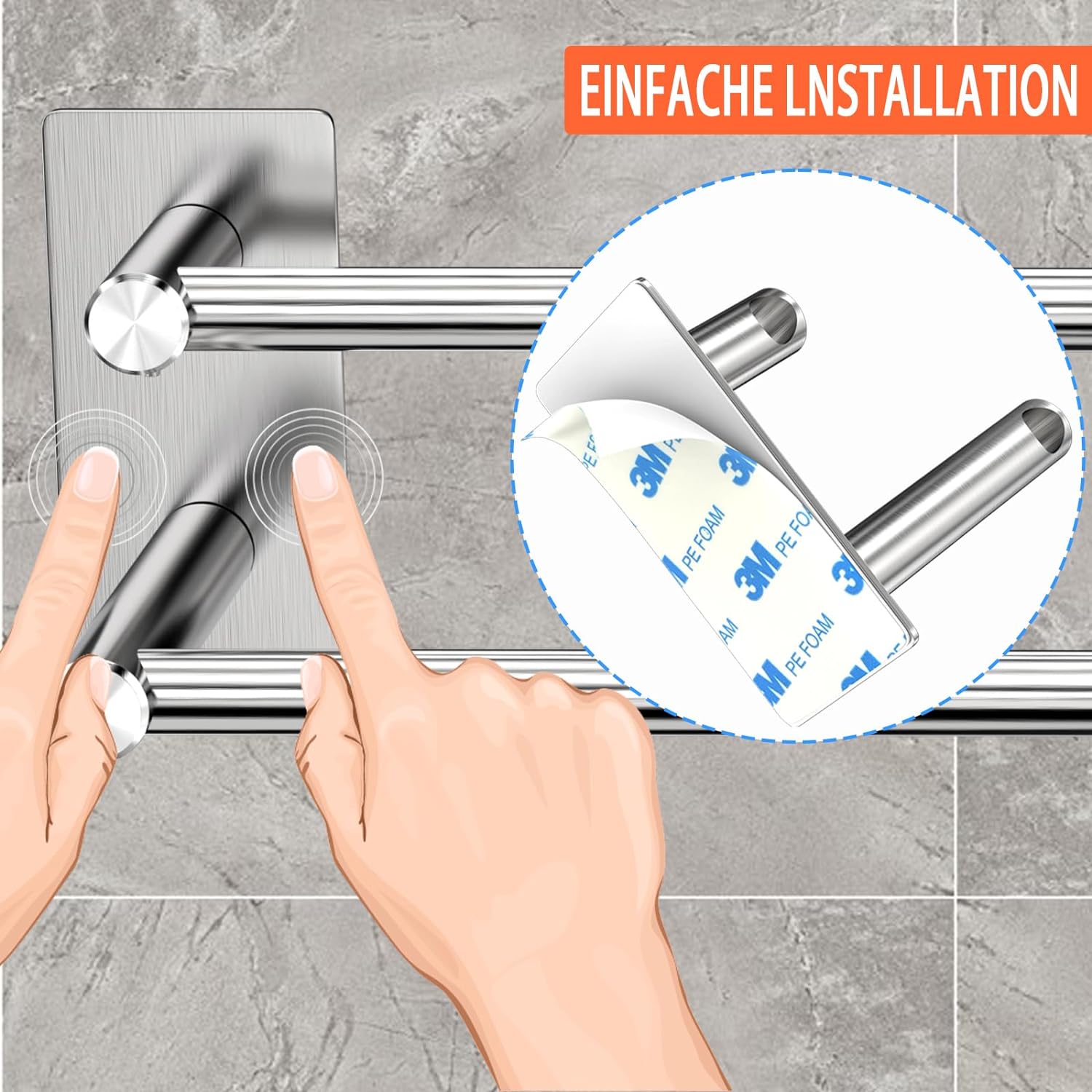 • 【Einfach zu installieren】Der selbstklebende Handtuchhalter ist so einfach zu installieren, kein Bohren, kein Werkzeug, keine Schäden an der Wand. Es ist eine perfekte Lösung, wenn Sie nach einem stilvollen Handtuchhalter suchen, sieht toll aus und