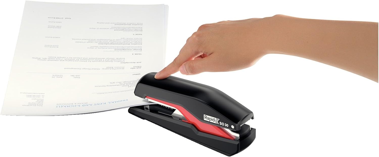 - Omnipress Super Flachheft-Tacker in schwarz/rot für bis zu 30 Blatt, Für die häufige Verwendung im Büro