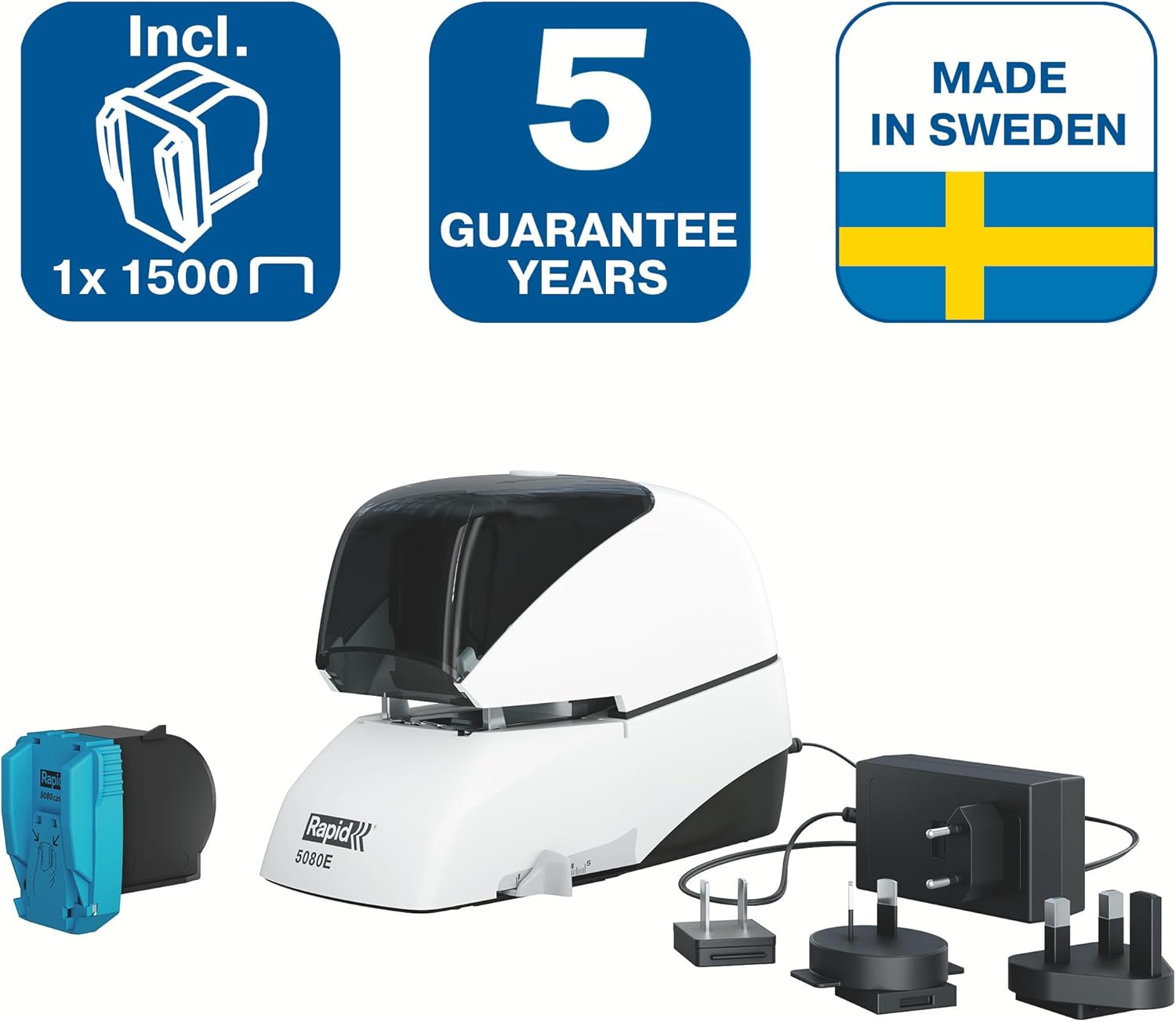 - Heftklammern: Kassette 5080e Heftklammern zum Zusammenheften von bis zu 80 Blatt (80 g/m²), 30% Platzsparen dank Flachhefttechnologie