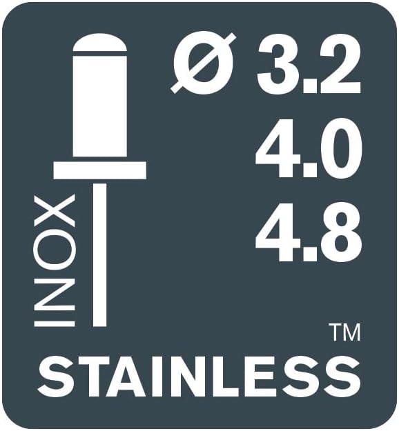 - Verarbeitet Aluminium und Edelstahl Blindnieten mit Durchmesser 3,2, 4,0 und 4,8 mm. Dank ihres einzigartigen Universalmundstücks kann die Nietenzange ohne Wechsel des Mundstücks verwendet werden