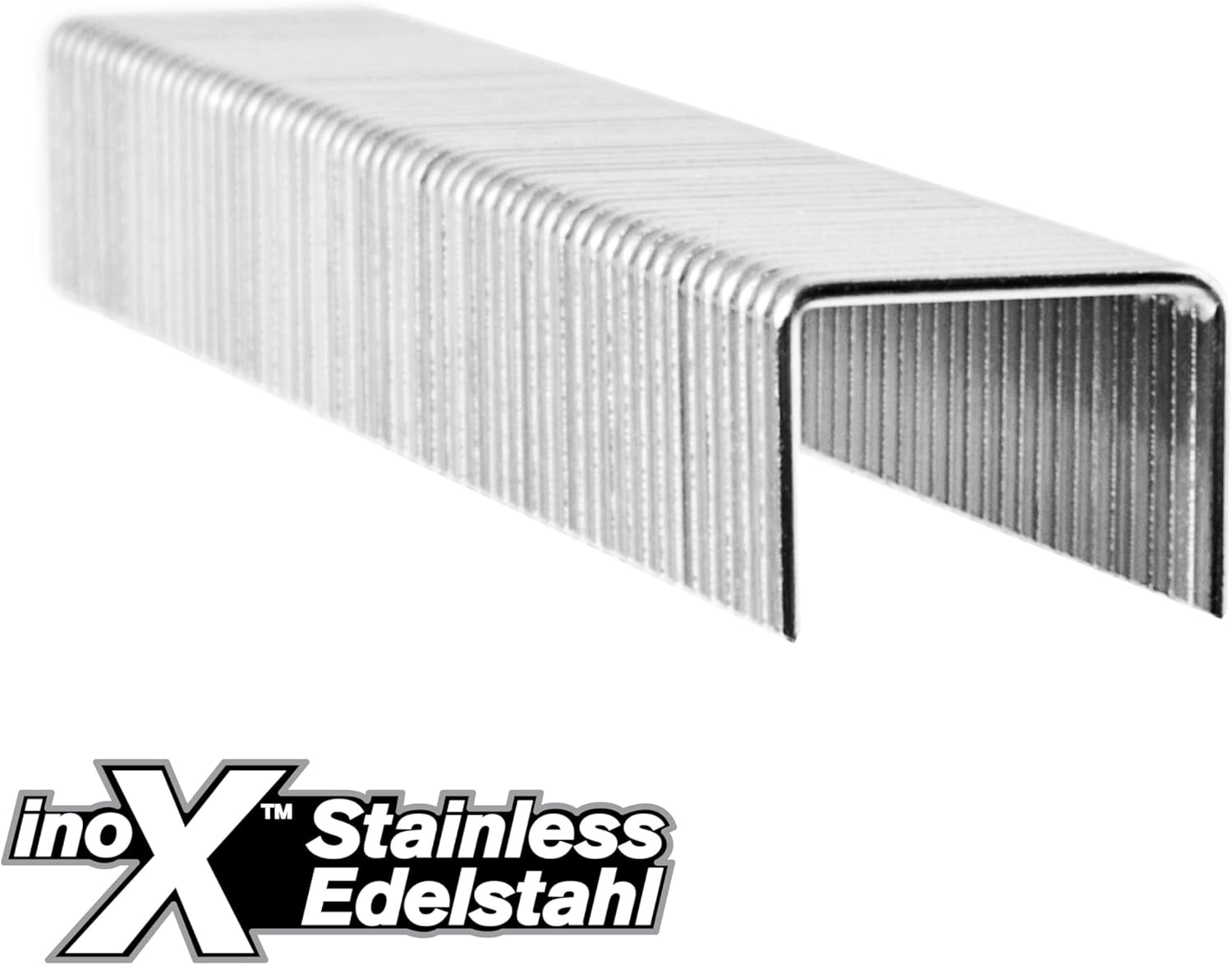 - Tackernadeln mit 10,6 mm Rückenbreite, 1,3 mm Drahtdicke und 10 mm Länge. Rostfreier V2A Edelstahl, geeignet für dauerhaften Ausseneinsatz oder in feuchter Umgebung.