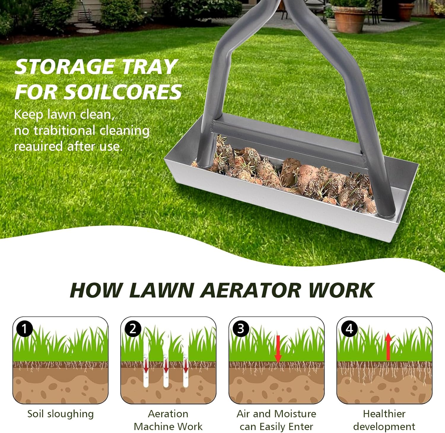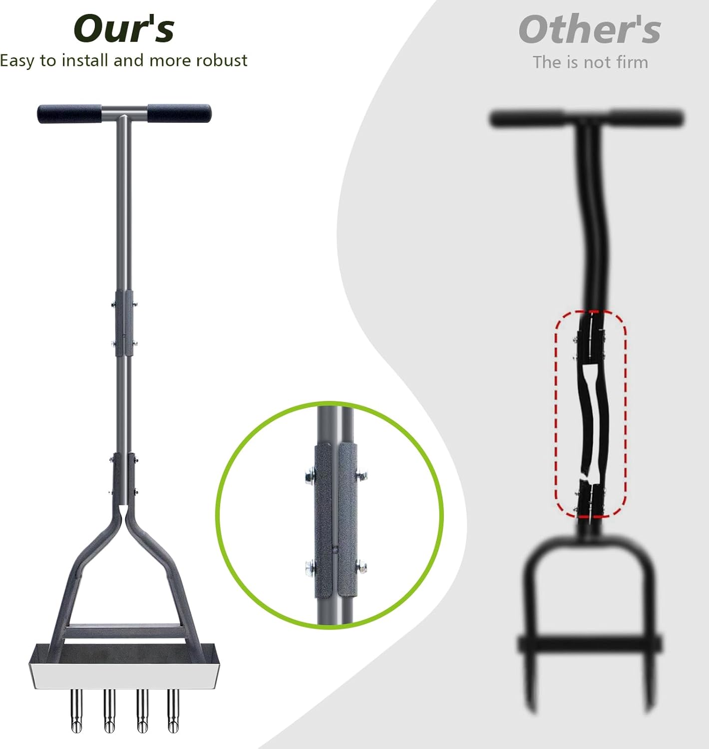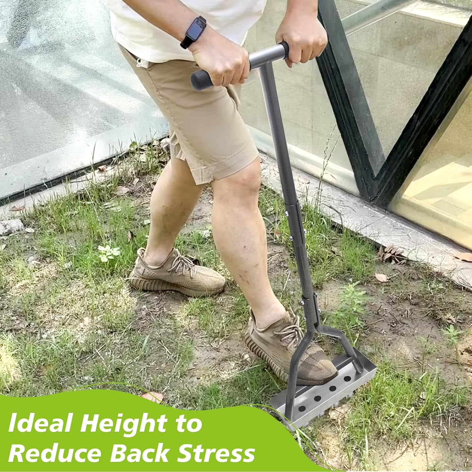 - Extra Stabile Bauweise für Anspruchsvolle Böden – Unser Rasenbelüfter besteht aus widerstandsfähigem Edelstahl (SUS 304) und einer massiven Stahlstange mit langlebiger Pulverbeschichtung. Selbst bei verdichtetem Lehmboden bleibt das Werkzeug