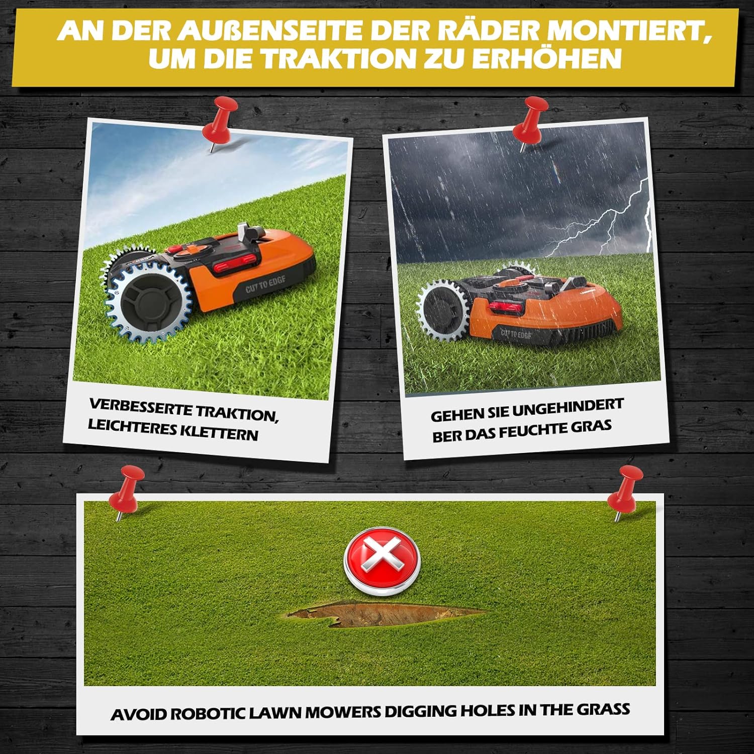 - ✅ Verbessern Sie die Traktion - mit unseren Mähroboter Spikes gibt es keine Löcher mehr im Rasen, es ist einfacher bergauf zu fahren und er rutscht an regnerischen Tagen nicht. Durchmesser 205mm und Dicke 2 mm.