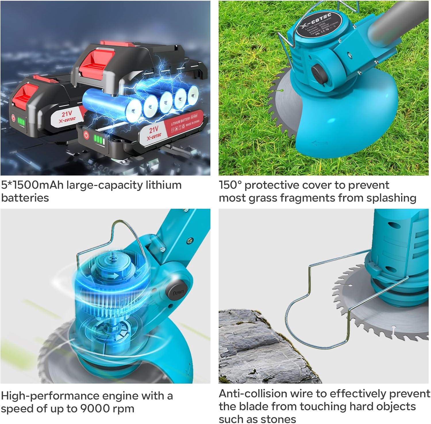 - 【800W Hochleistungsmotor – Kraftvoll & Präzise】⚡Der Akku-Rasentrimmer ist mit einem langlebigen 800W Reinkupfermotor ausgestattet und erreicht beeindruckende 9000 U/min. Damit schneidet er mühelos dichtes Gras, hohes Unkraut und sogar zähe