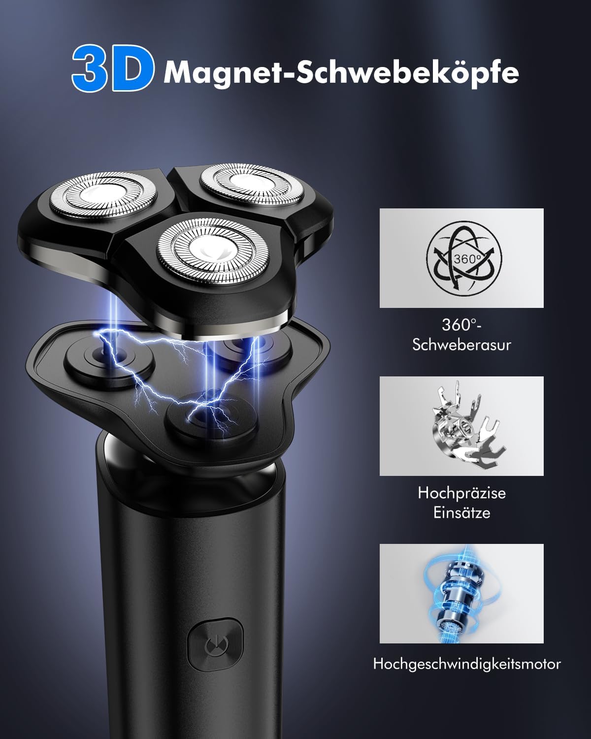 - 【Leistungsstarker Motor - Hohe Drehzahl】Der neu aufgerüstete trockenrasierer herren elektrisch hat eine Motor-Drehzahl von bis zu 10000 U/min, die sich mühelos den Kurven Ihres Gesichts, Halses und Kinns anpasst, um eine effiziente und sanfte Rasur