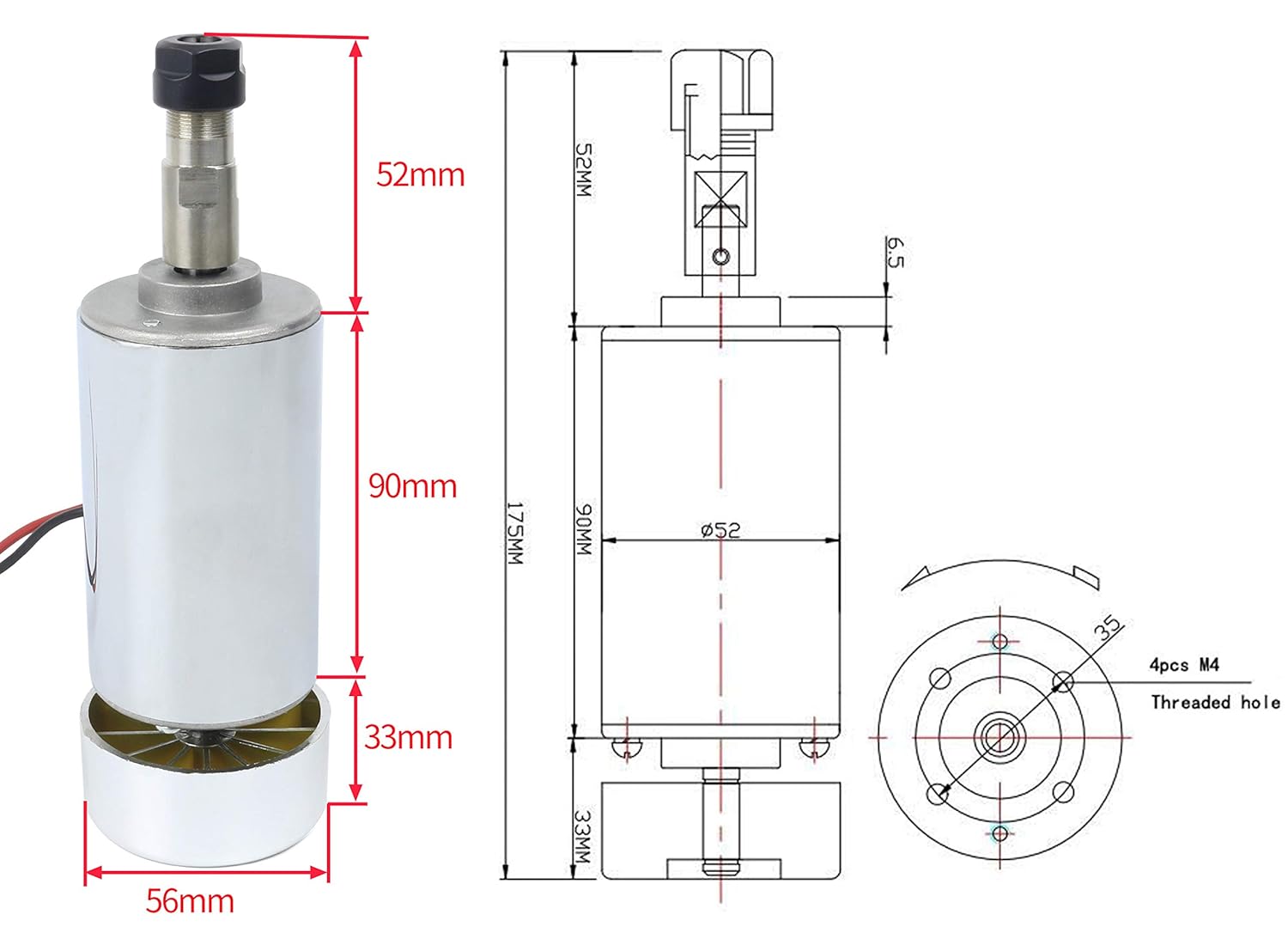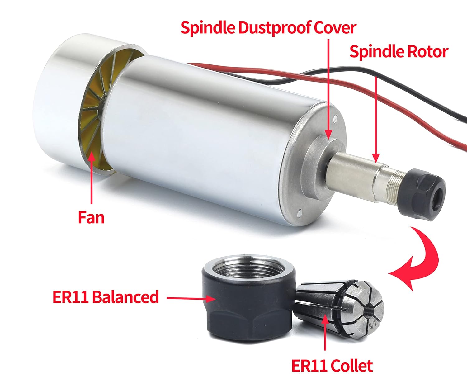 - PAKET ENTHÄLT - 1 × 300W CNC Luftgekühlter Spindelmotor, 1 × ER11 Spannfutter + 3,175mm Spannzange