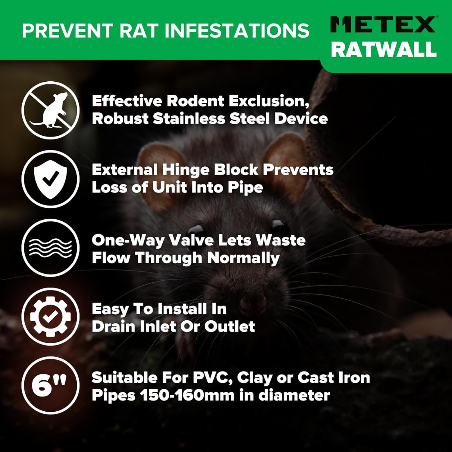 - Aus Edelstahl – Rattenblocker für Ton- und PVC-Drainagesysteme.