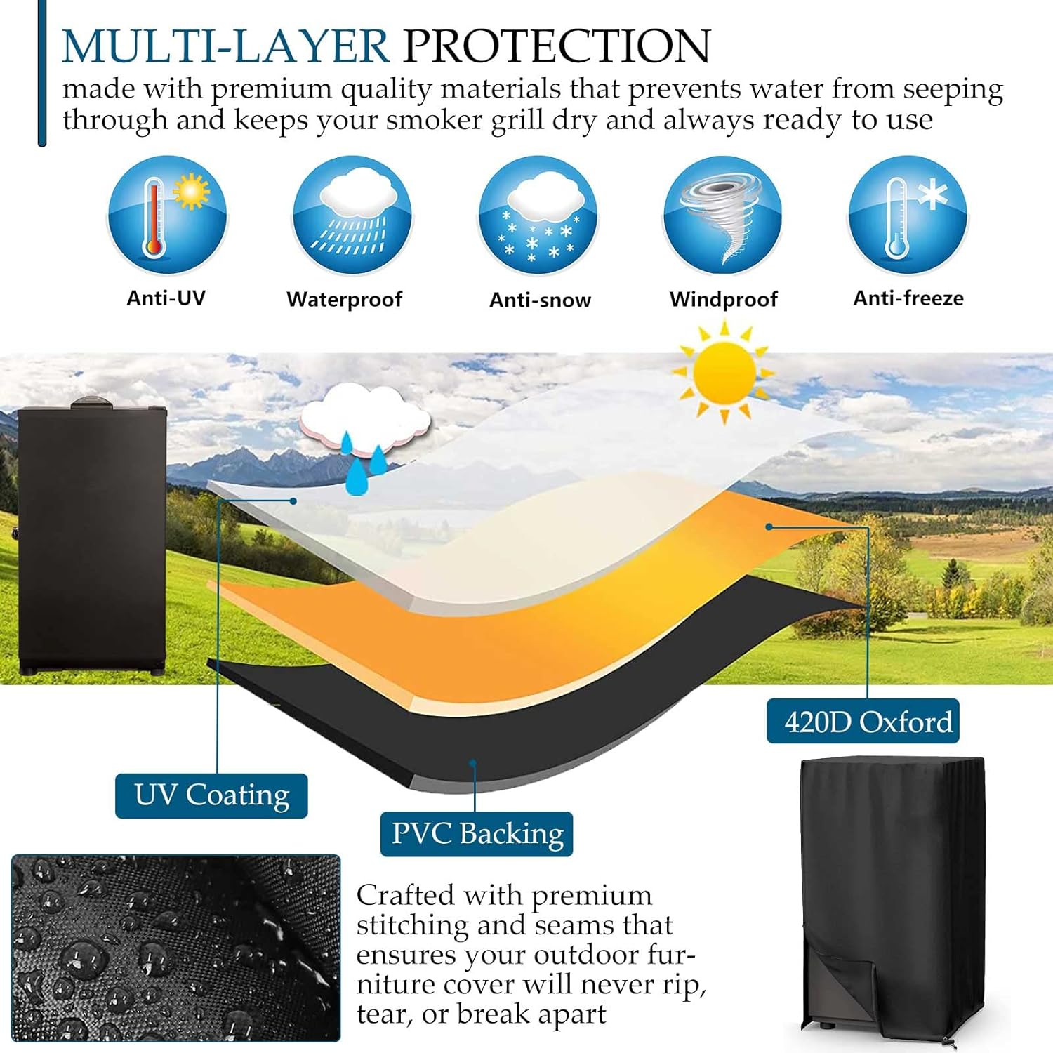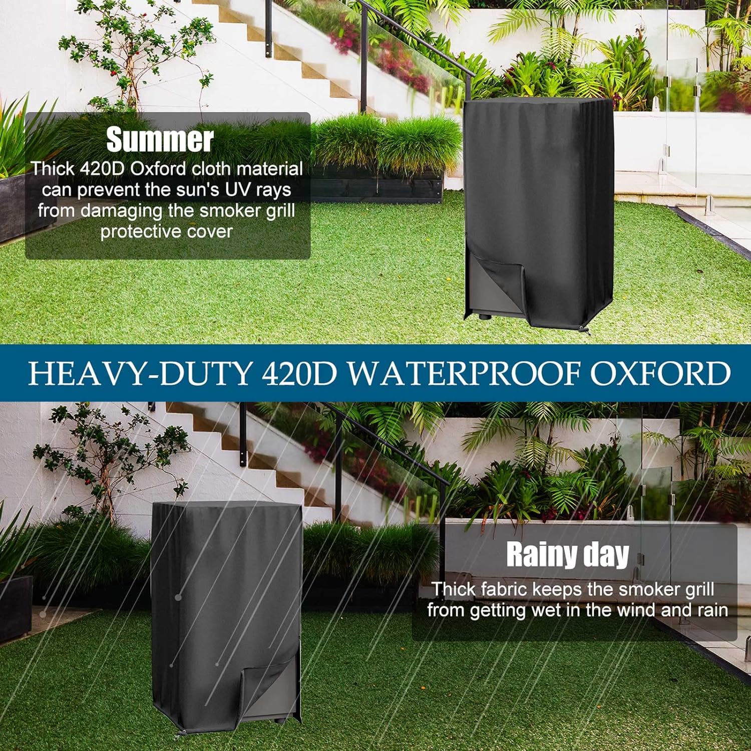 • PREMIUM-MATERIAL: Räucherofen abdeckhaube abdeckplane besteht aus robustem 420D Oxford-Stoffmaterial, das eine gute Belüftung bietet, räucherofen schutzhülle und einen hervorragenden Sonnen- und Regenschutz bietet. Das Material ist sehr schwer und