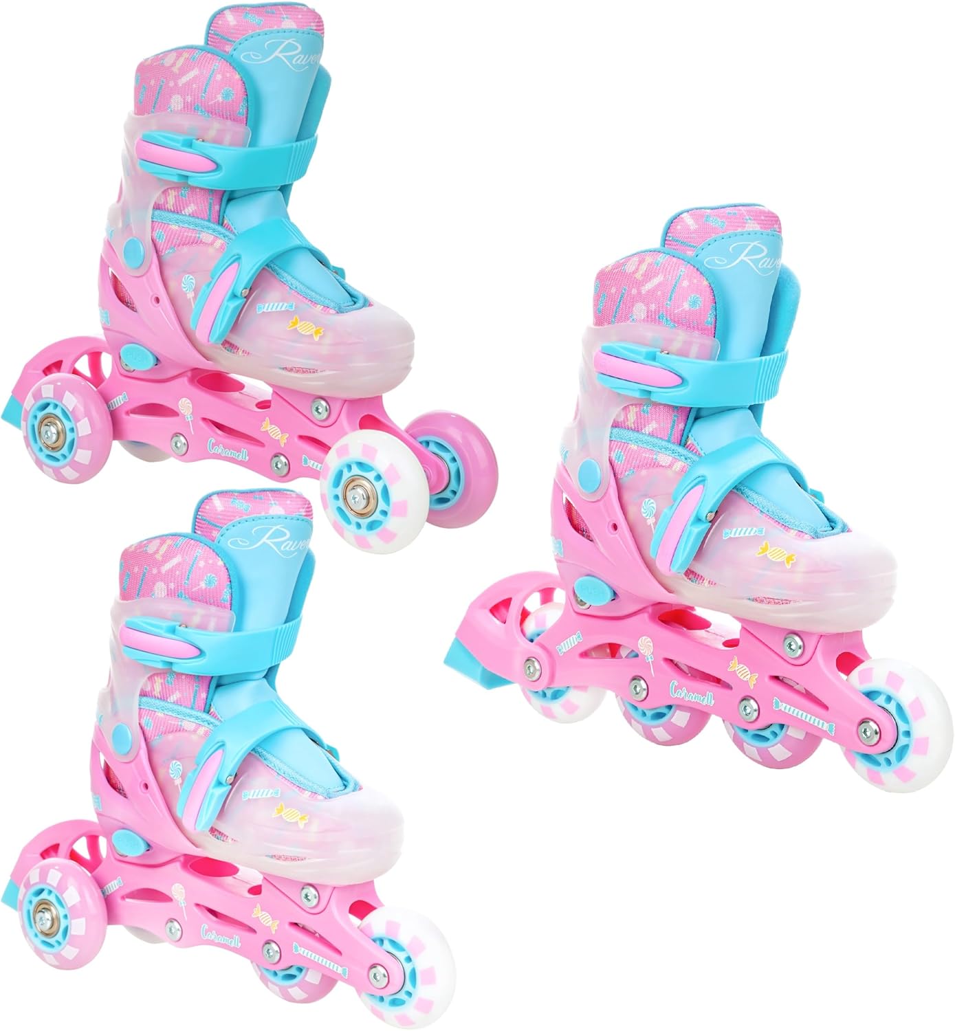 - 3in1 - Inlineskates sind mit zusätzlichen Teilen ausgestattet. Dank ihnen lassen sich die Inliner zu den Triskates oder Rollschuhen verstellen. Sehr einfache Montage, die selbst ausgeführt werden kann.