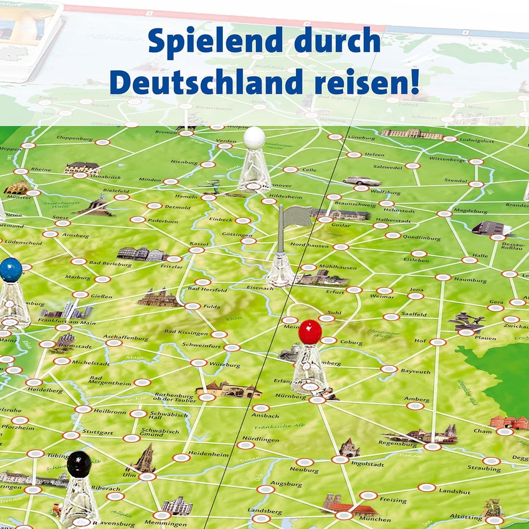 - Das Ziel: Acht Städte besuchen, als Erster wieder am vorher festgelegten Startort sein. Gefragt sind: Taktik, Spass und etwas Würfelglück. Abwechslung bieten die zwei verschiedenen Spielpläne der Deutschlandreise: Sie zeigen die geografische und die politische Karte