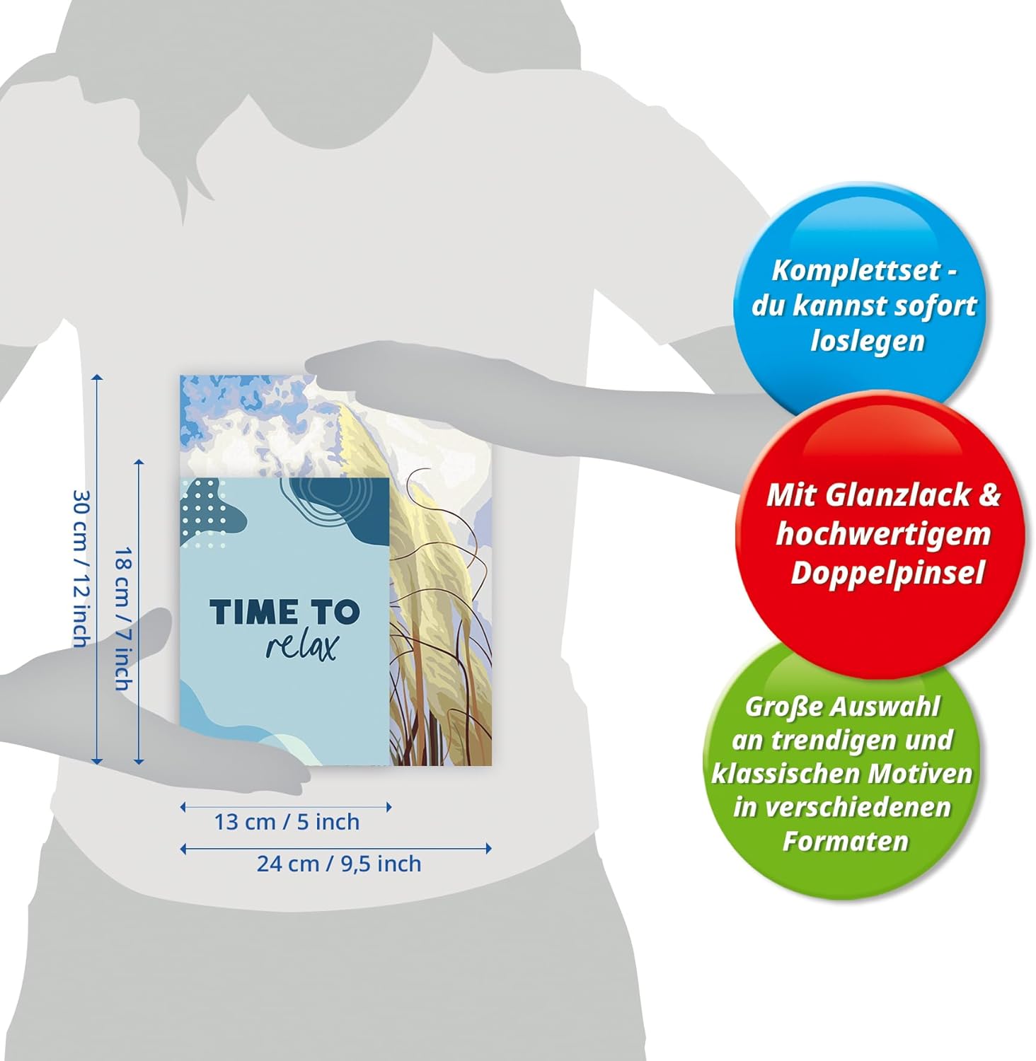 • Entspannung und Stressabbau: Mit einem Malen nach Zahlen ist der Weg zur inneren Ruhe und Entspannung ganz leicht, denn die Malfelder sind nummeriert und werden nach und nach mit der passenden Acrylfarbe ausgemalt