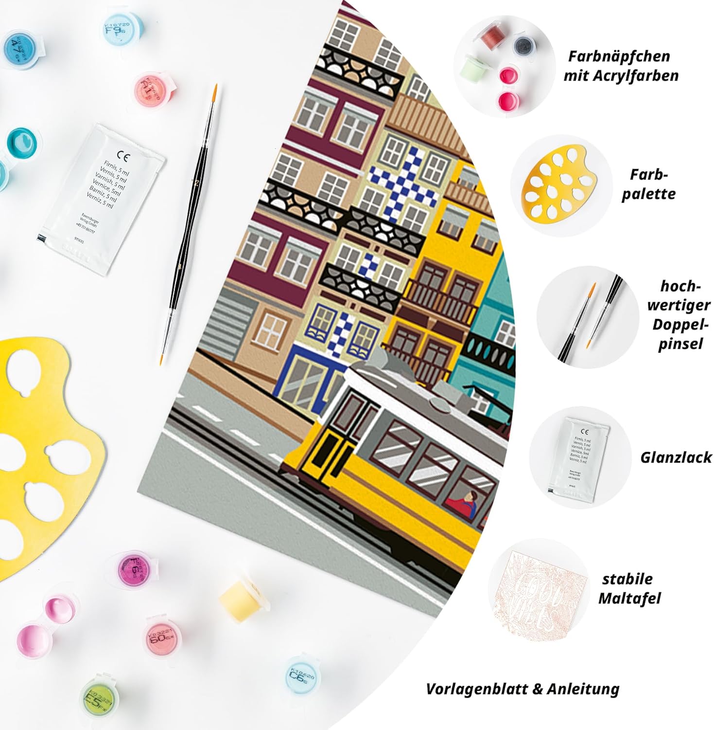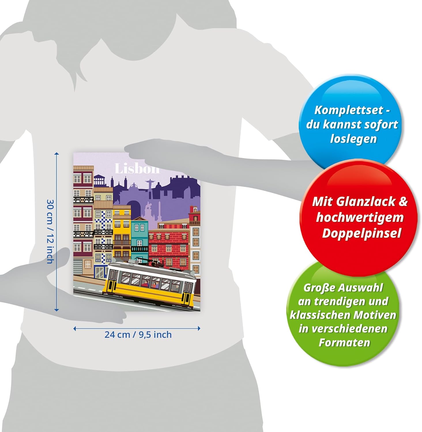 - Geschenkidee: Das farbenfrohe Malen nach Zahlen Lissabon-Motiv liegt voll im Trend und eignet sich ausgezeichnet als Geschenk für Frauen und Männer - egal ob als Geschenk zu Weihnachten, Ostern oder als Geburtstagsgeschenk