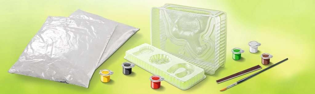 - Im Set enthalten sind zwei Giessformen, zwei Gipsbeutel, Pinsel, Feile sowie eine Anleitung