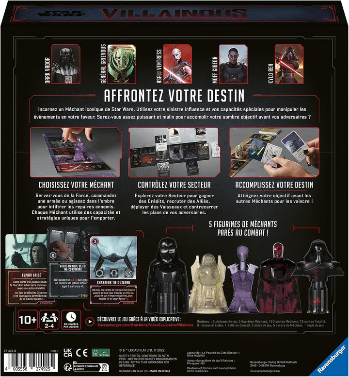 - Fühlen Sie die Kraft der dunklen Seite! Exit die netten Jedi, Star Wars Villainous ist ein spannendes und böses Strategiespiel für die ganze Familie. Entdecken Sie die 5 Bösewichte dieses Grundspiels. Spielbar mit oder ohne Basisspiel.