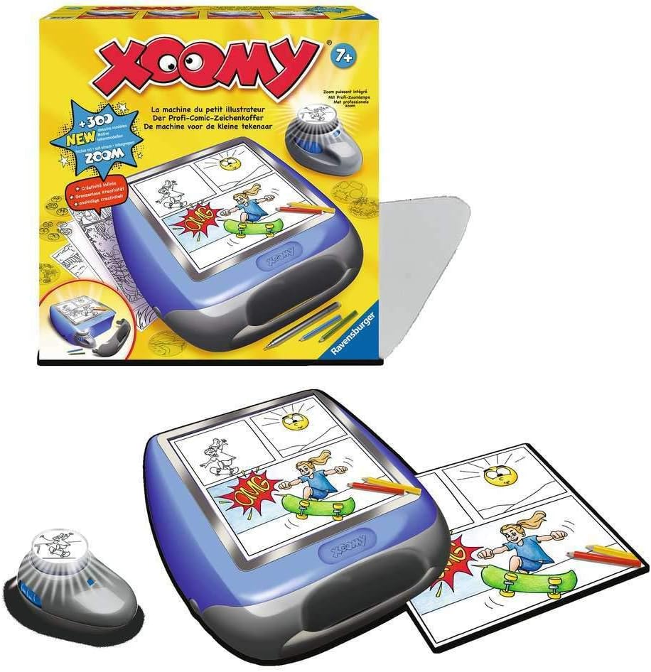 - Mit Xoomy erlernen Kinder ab 7 Jahren die Kunst des Zeichnens. Einfach das Papier auf den Leuchttisch legen, das Motiv mit der LED-Zoomlampe auf das Papier projizieren, die Konturen nachzeichnen und die Zeichnung ausmalen