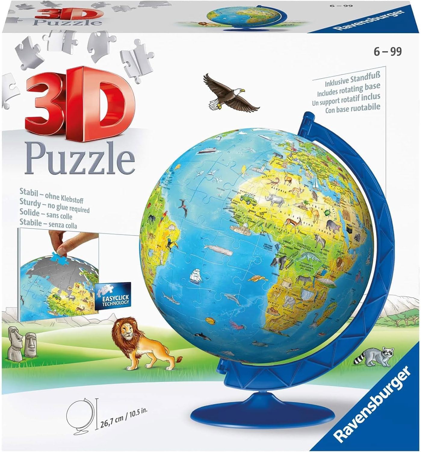 - Ravensburger 12340 3D-Globuspuzzle, 180 Teile, Mehrfarbig, Empfohlenes Alter 7-12 Jahre, Grösse 26,7 x 23 cm