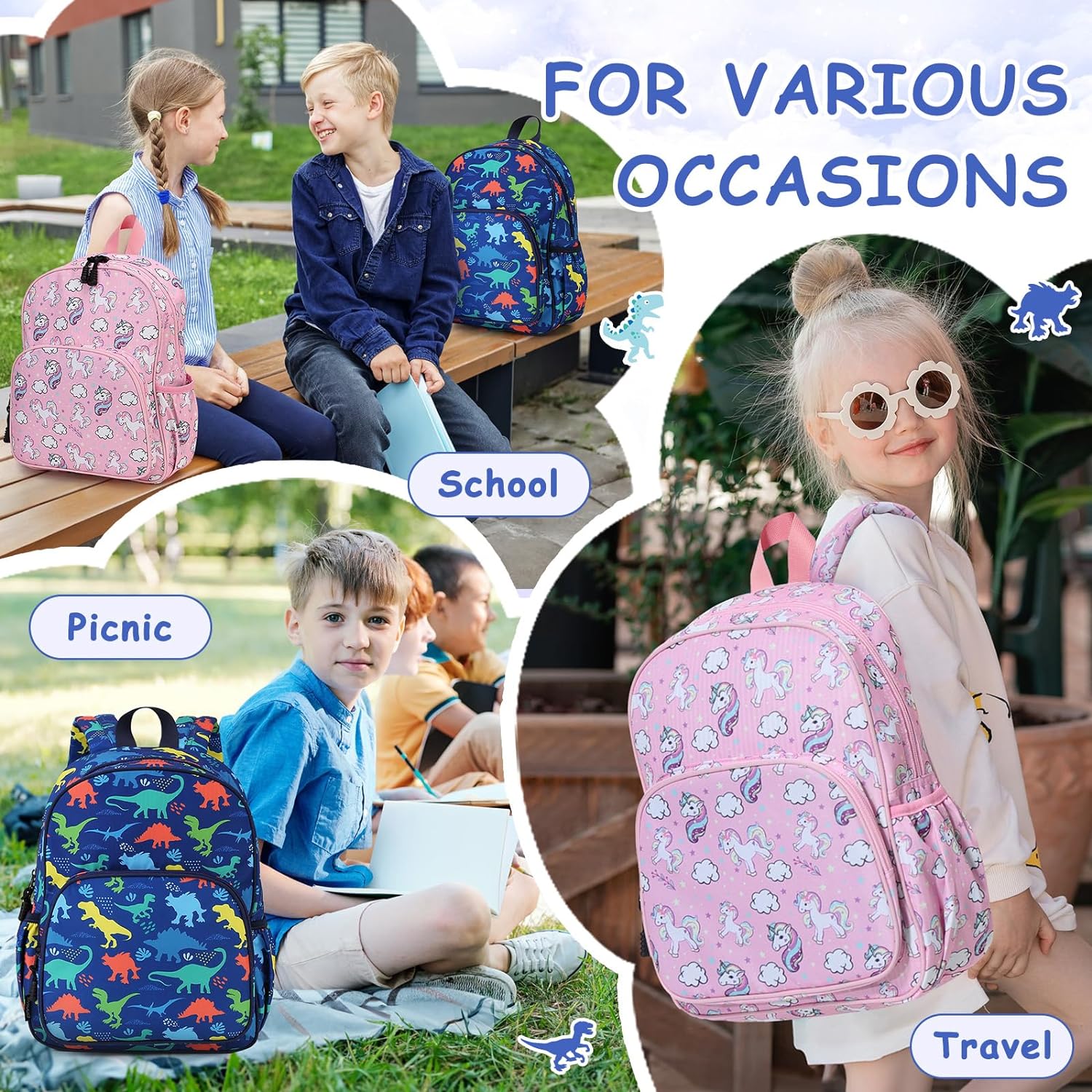• 🎈 LEICHT UND BEQUEM:Der Einhorn- und Dinosaurier-Rucksack verfügt über zwei verstellbare, gepolsterte Schultergurte und einen Tragegriff an der Oberseite und lässt sich leicht an die Grösse von Jungen und Mädchen anpassen. Der verstellbare