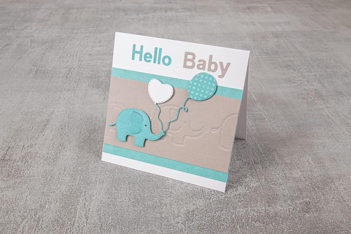- 1x Maschine, 2x Schneideplatte (75 x 165 x 3 mm), 1x Schneideplatte (75 x 165 x 5 mm), 1x Prägematte (75 x 165 x 3 mm), Anleitung zum Stanzen und Prägen auf der Packung