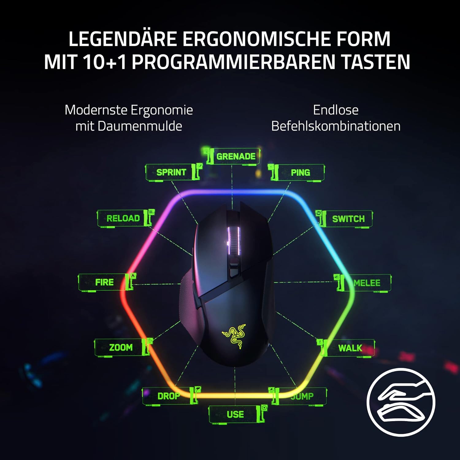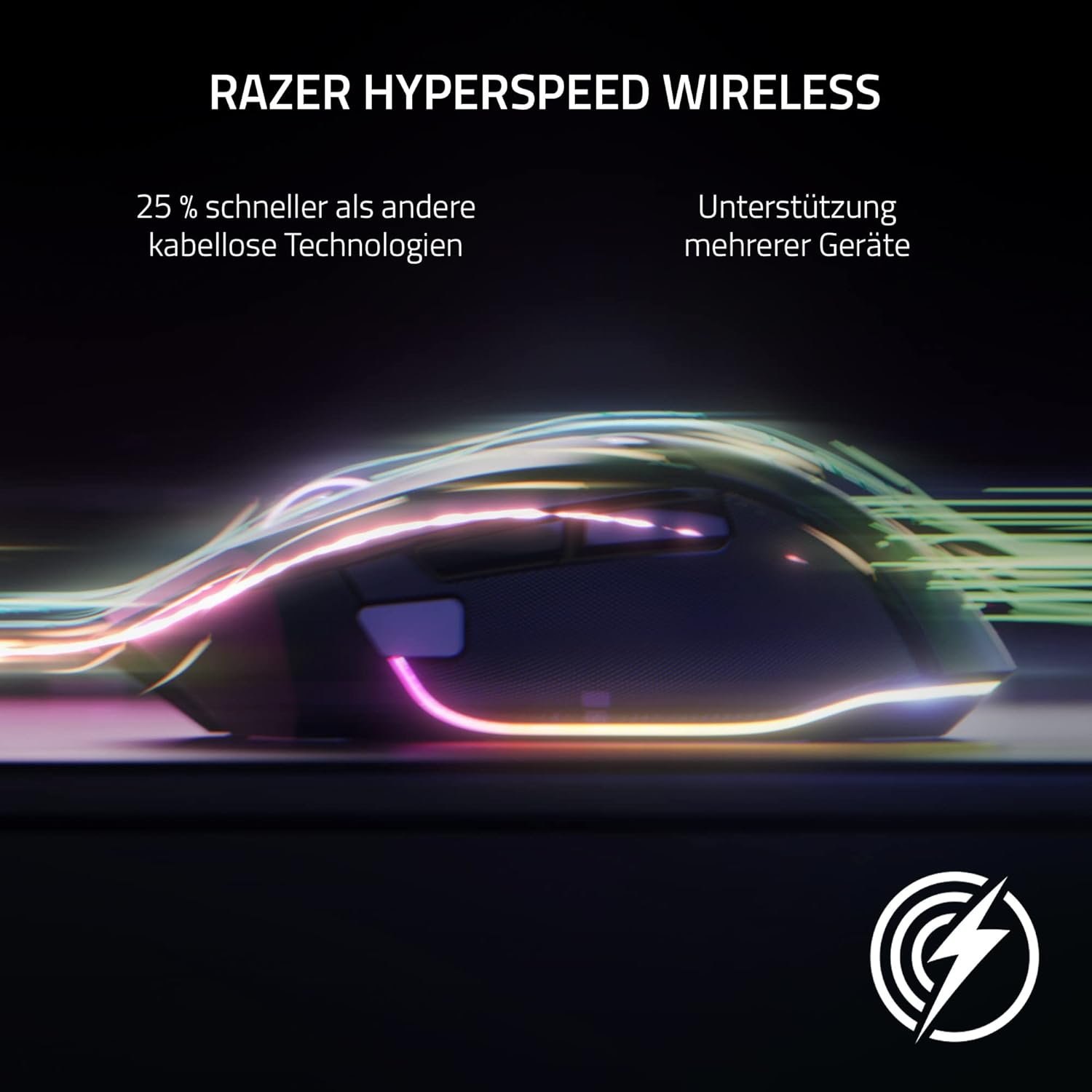 - Razer HyperSpeed Wireless: Praktisch latenzfreies Gaming auf Turnierniveau, 25 % schneller als mit anderen kabellosen Technologien - Hol dir das Upgrade auf eine Abtastrate von echten 8K Hz per Razer Mouse Dock Pro oder dem kabellosen Razer