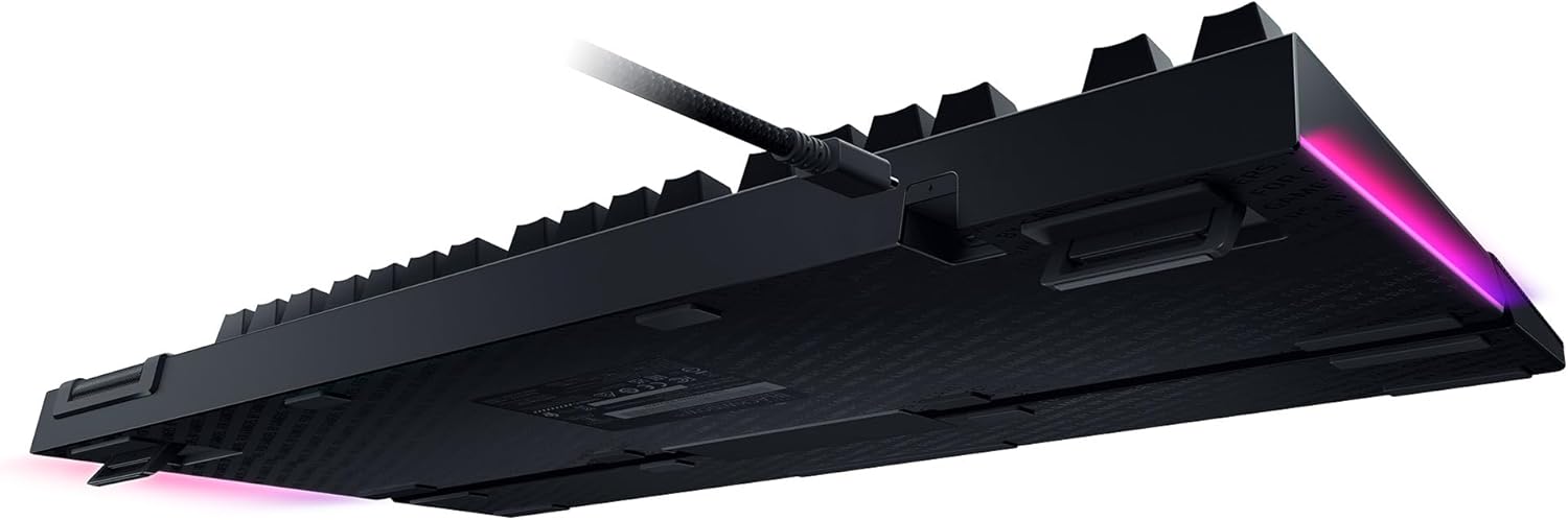 • Unterbodenbeleuchtung an 2 Seiten und Einzeltastenbeleuchtung Powered by Razer Chroma RGB: Die Einzeltastenbeleuchtung und die faszinierende Unterbodenbeleuchtung lassen die Tastatur aus noch mehr Blickwinkeln erstrahlen, perfekt synchronisiert mit