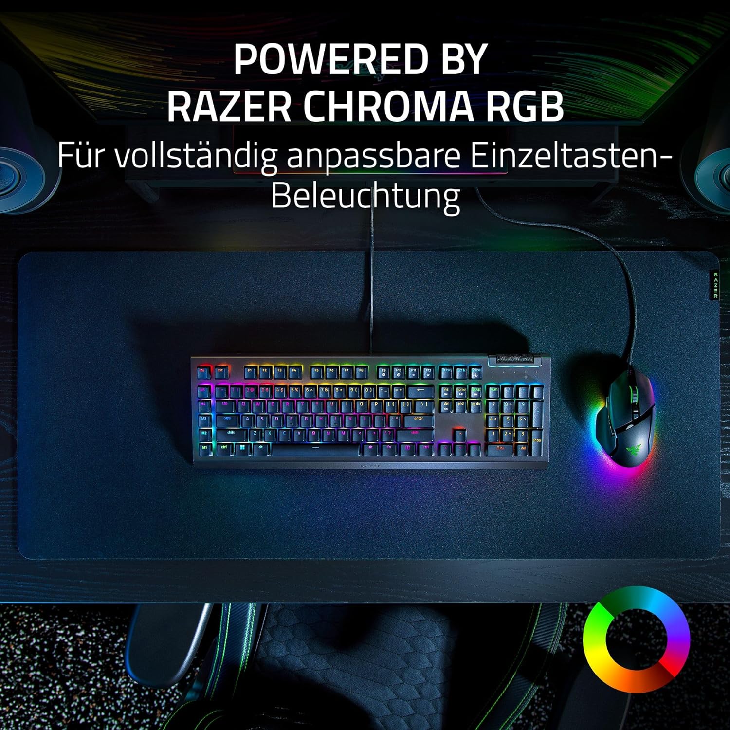 - Powered by Razer Chroma RGB Für vollständig anpassbare Einzeltasten-Beleuchtung: Dank Switches, deren Aufbau eine noch hellere, gleichmässige Beleuchtung ermöglichen, kannst du für jede einzelne Taste unter 16,8 Millionen Farben sowie zahlreichen