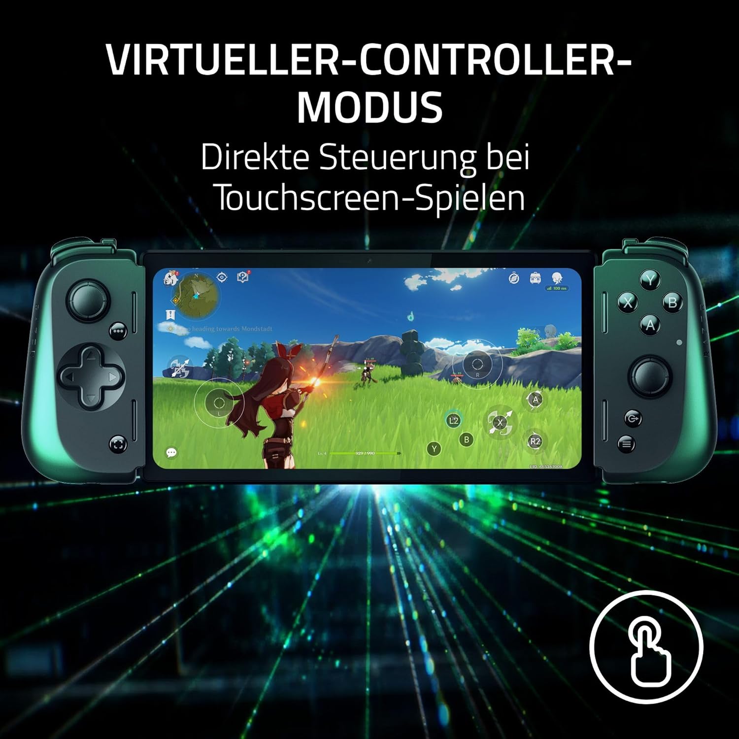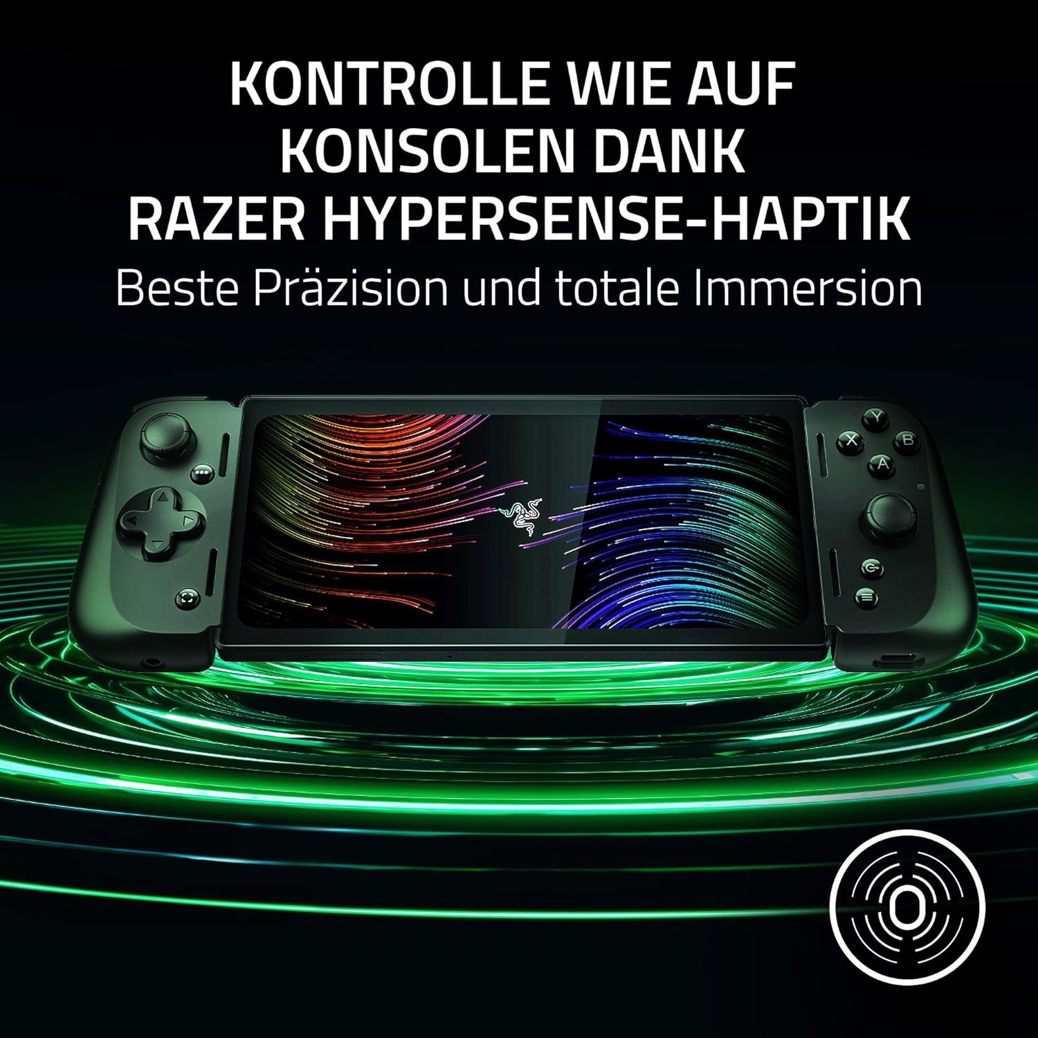 - Kontrolle wie auf Konsolen dank Razer HyperSense-Haptik Beste Präzision und totale Immersion. Gaming per Touchscreen oder mit den im Lieferumfang enthaltenen Razer Kishi V2 Pro mit Microswitch-Tasten, analogen Triggern, programmierbaren Makros und Razer