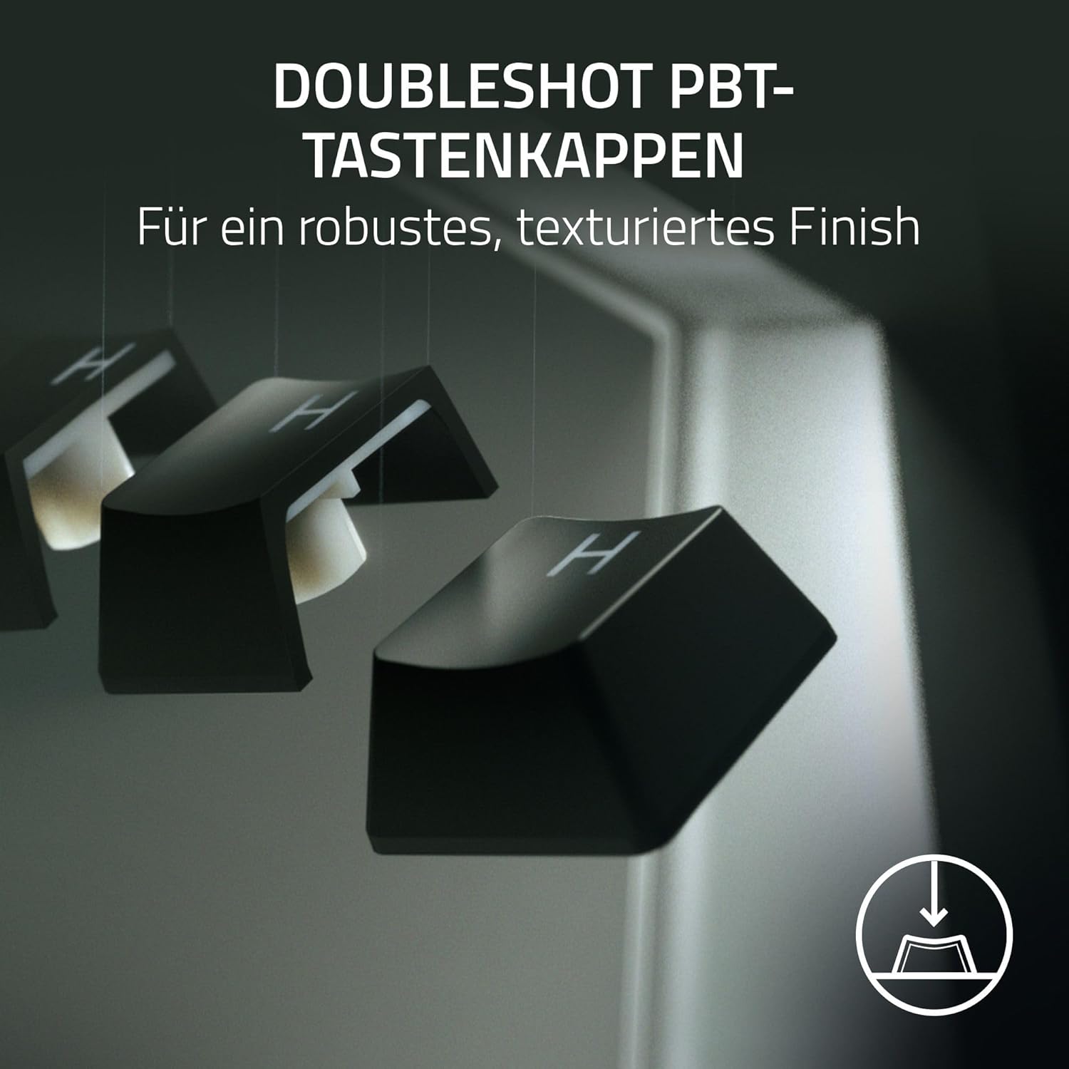 - Doubleshot PBT-Tastenkappen Für Ein Robustes, Texturiertes Finish: Diese Tastenkappen sind härter und robuster als herkömmliche Varianten. Dank der Herstellung per Doubleshot-Gussverfahren werden sie mit der Zeit auch nicht blank und die Beschriftung