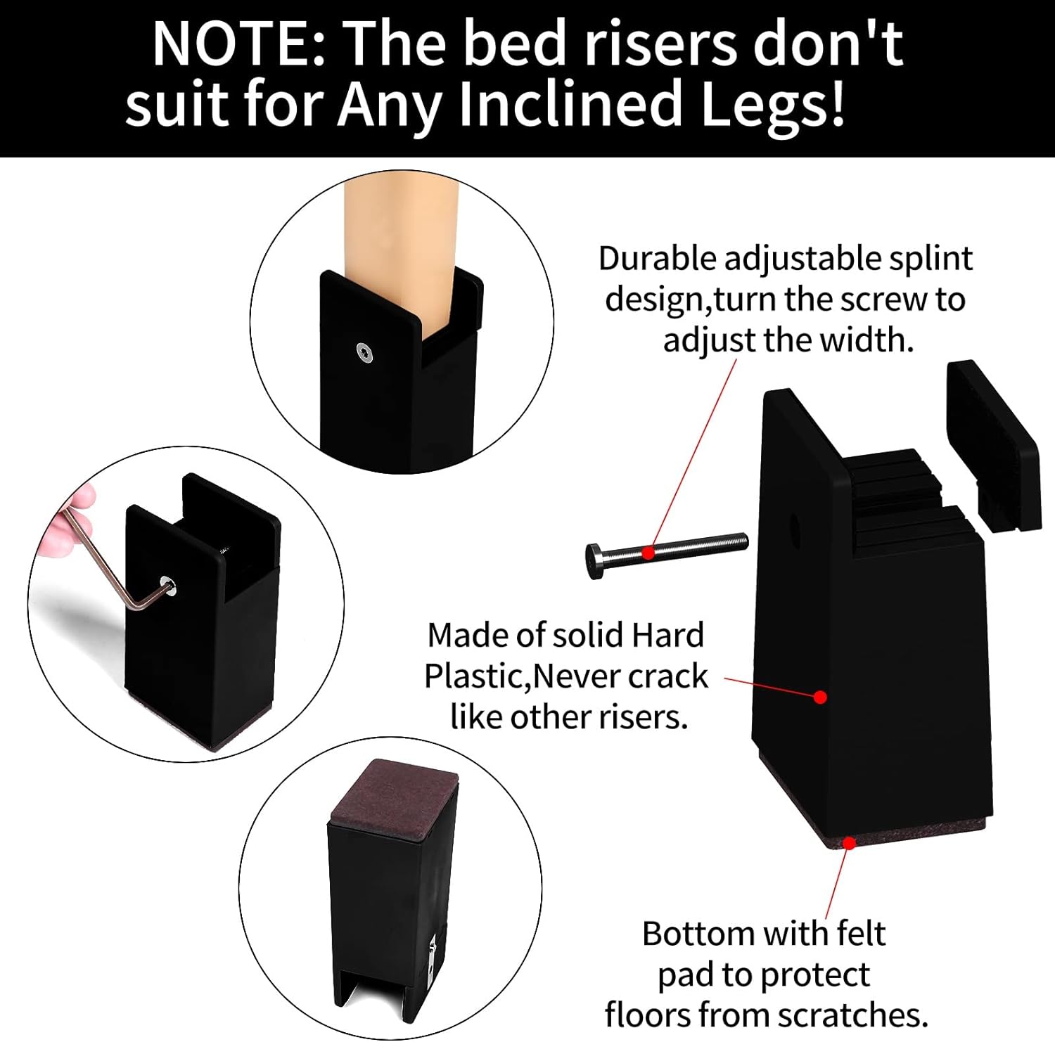 - 【Robuste Betterhöhungen】Hergestellt aus robusten Materialien, sodass diese Möbelerhöhungen super stark und langlebig sind und problemlos bis zu 5000 Pfund heben können.Nicht nur gut zum Anheben von Betten und Matratzen, sondern auch ideal zum