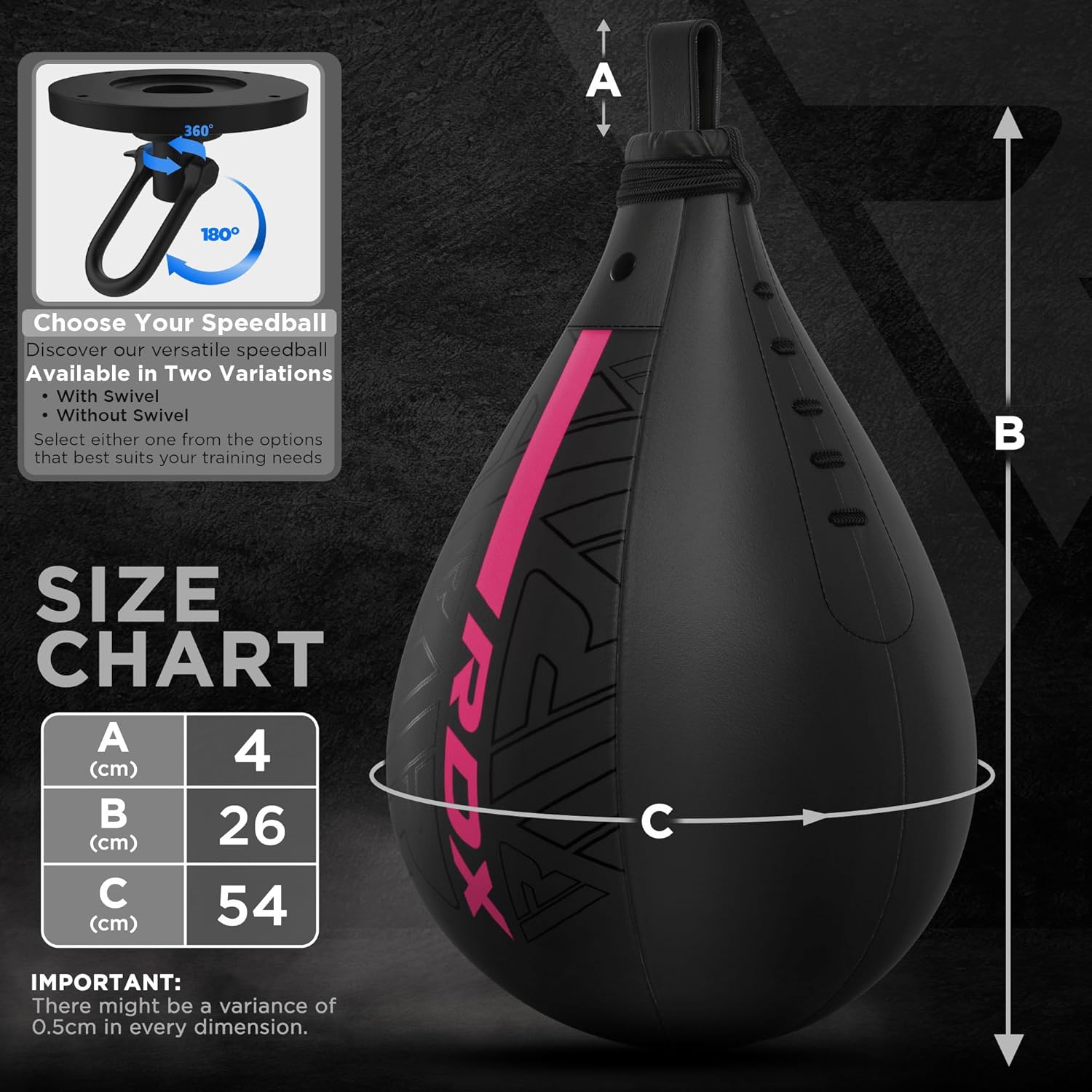 • ZUSÄTZLICHES ZUBEHÖR - Der RDX Speedball wird mit einer zusätzlichen Blase geliefert, die bei Bedarf einfach eingesetzt werden kann, sowie mit einem Metallwirbel, mit dem der Speedbag an jeder beliebigen Plattform aufgehängt werden kann und eine