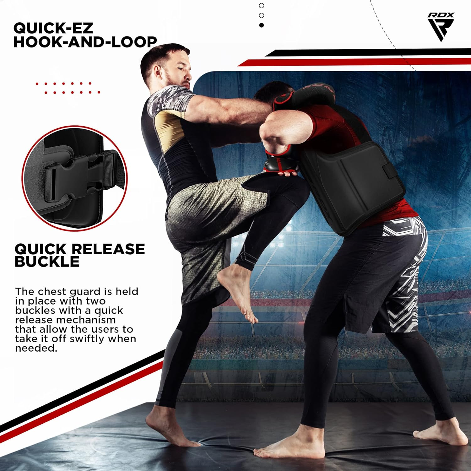 - DREIFACHPOLSTERUNG macht diesen Brustschutz zu einer effizienten Schutzausrüstung. Das leichte Schutzpolster schützt die Brust vor hochintensiven Schlägen.