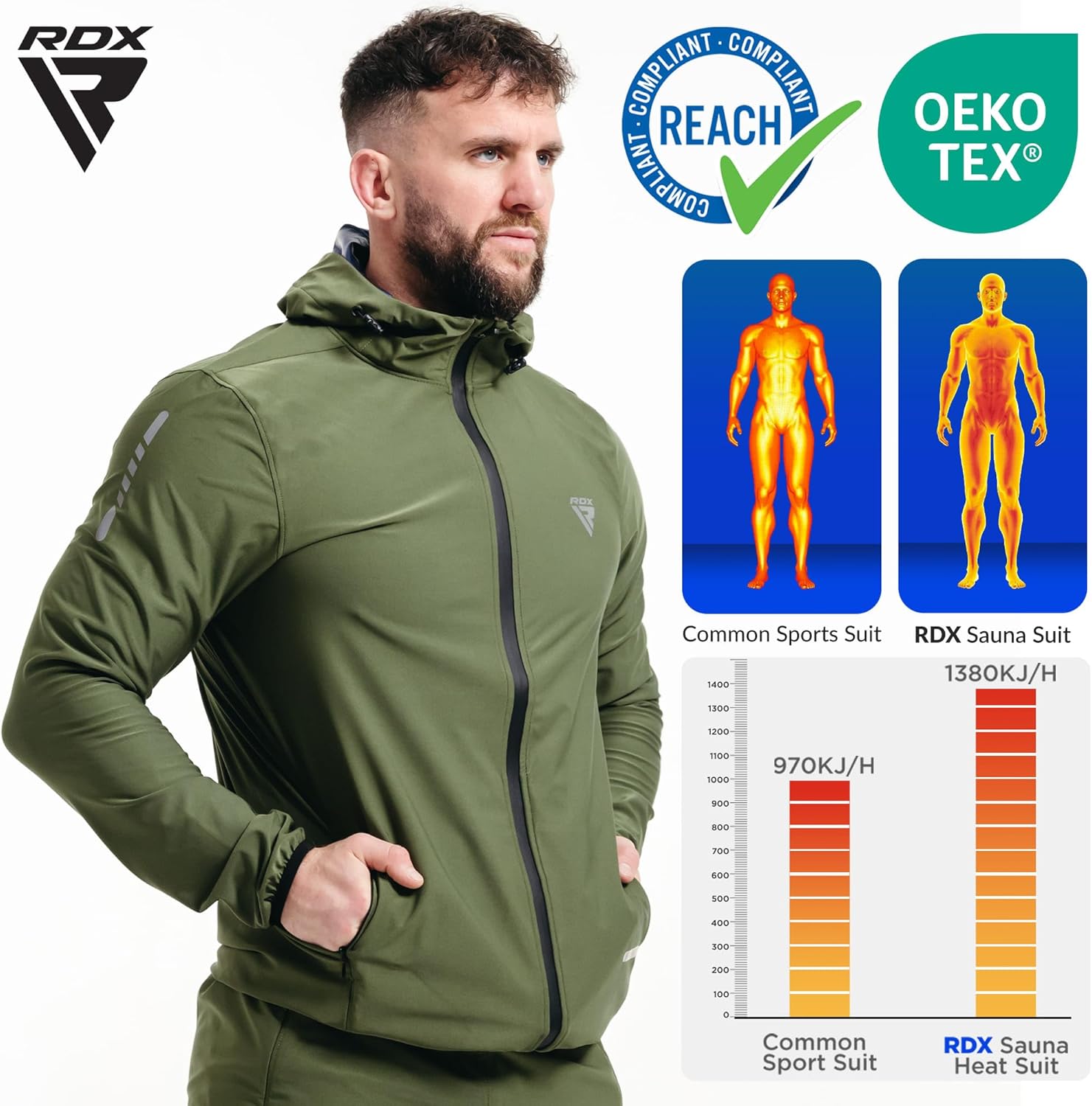 RDX Schwitzanzug Zum Abnehmen, Saunaanzug Reach Konform, Kapuzen Anzug Sauna Suit Sweatanzug Sportan