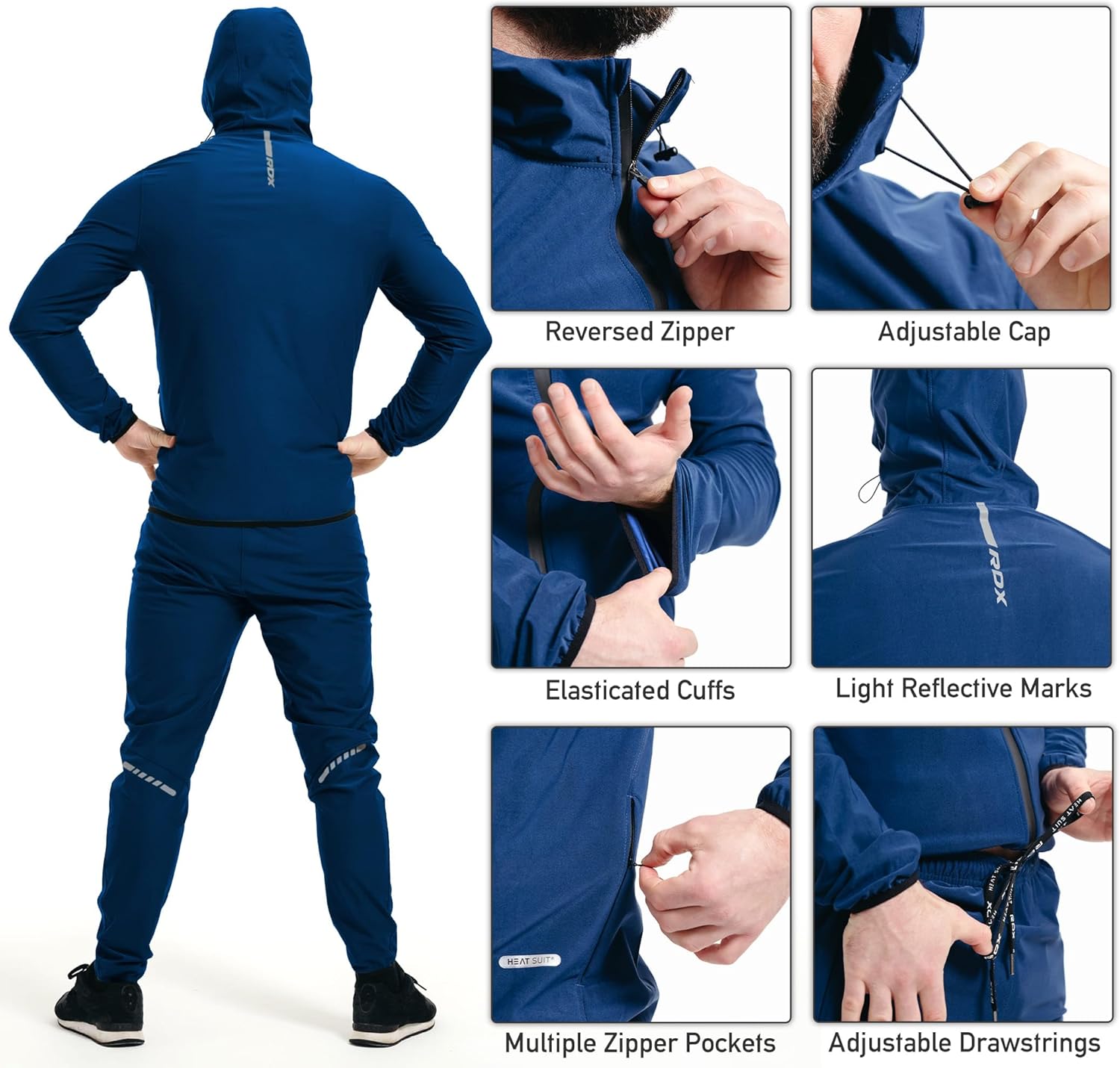 - UMFASSENDES DESIGN - Der Ganzkörper-Schweissanzug hat eine befestigte Kappe mit verstellbaren Schnüren und eine Jacke mit Reissverschluss, um den Wärmeeinschluss für die Gewichtsabnahme zu maximieren. Der leichte Wärmeanzug besteht aus einem