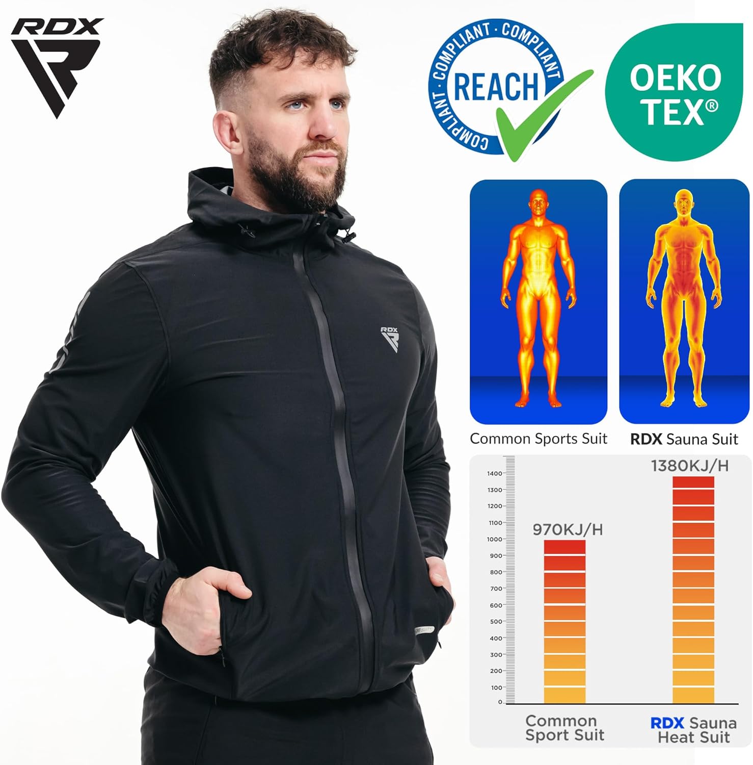 RDX Schwitzanzug Zum Abnehmen, Saunaanzug Reach Konform, Kapuzen Anzug Sauna Suit Sweatanzug Sportan